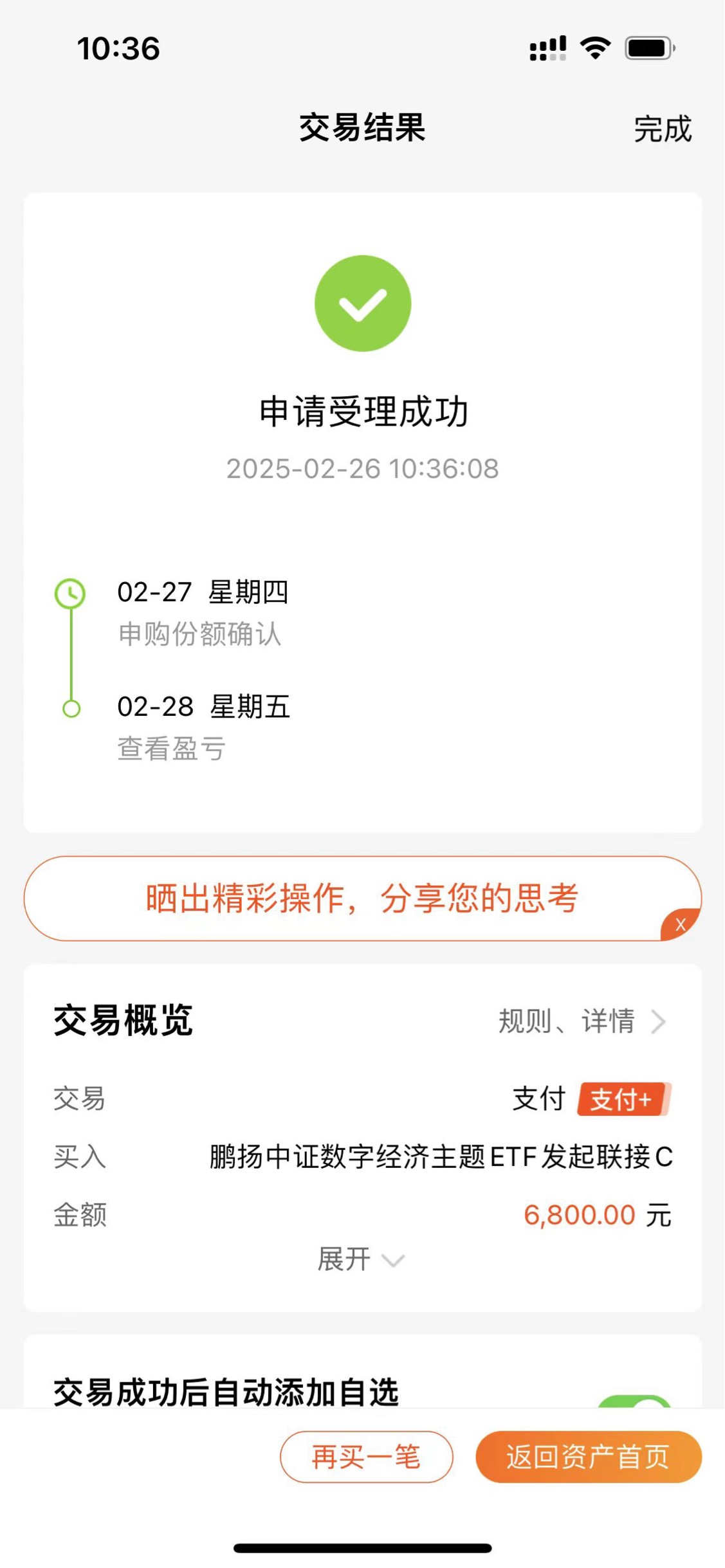 我买的$鹏扬中证数字经济主题ETF发起联接C$,正好调整了两天感觉可以加仓了,业
