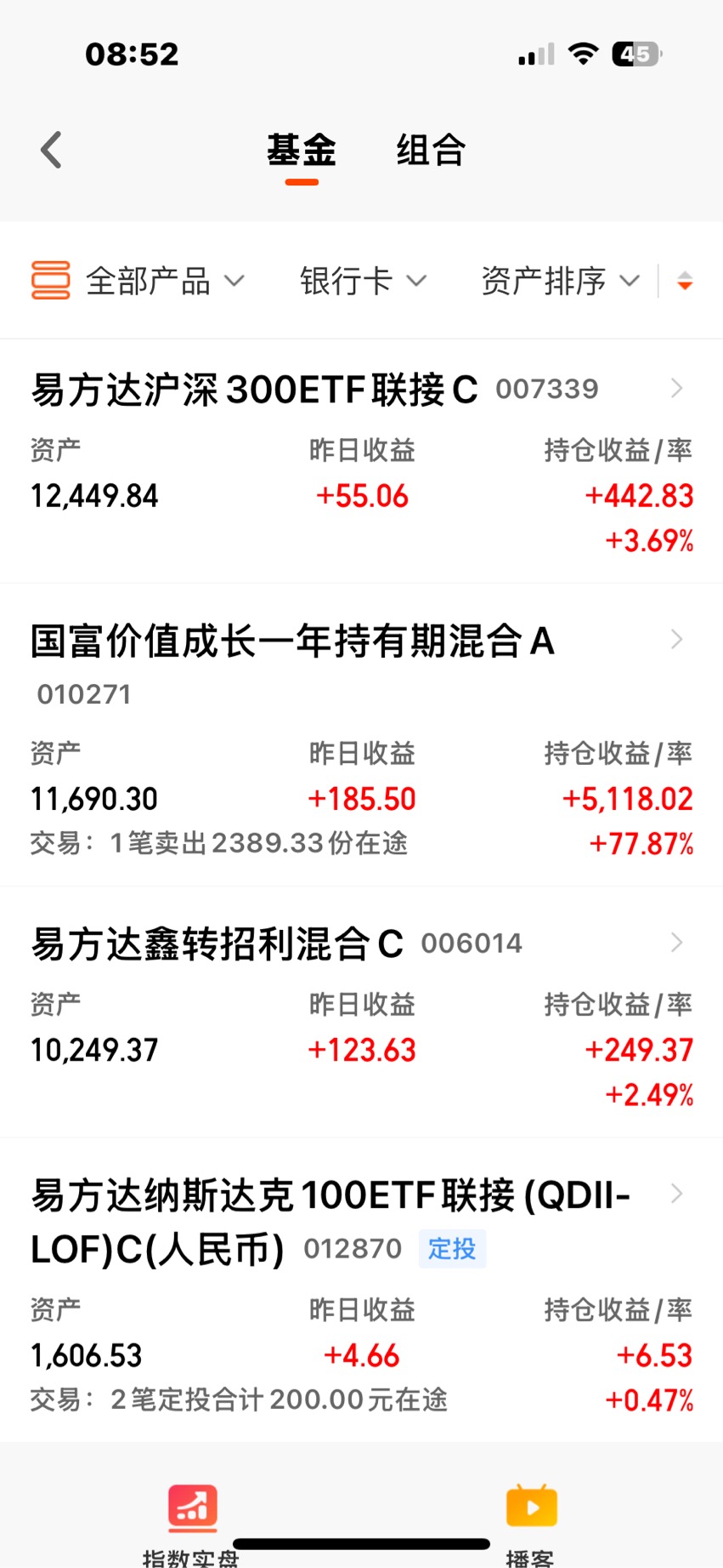 现持有4只基金,4季度清仓国富价值(偏股基金),然后增加恒生科技指数基金代替。