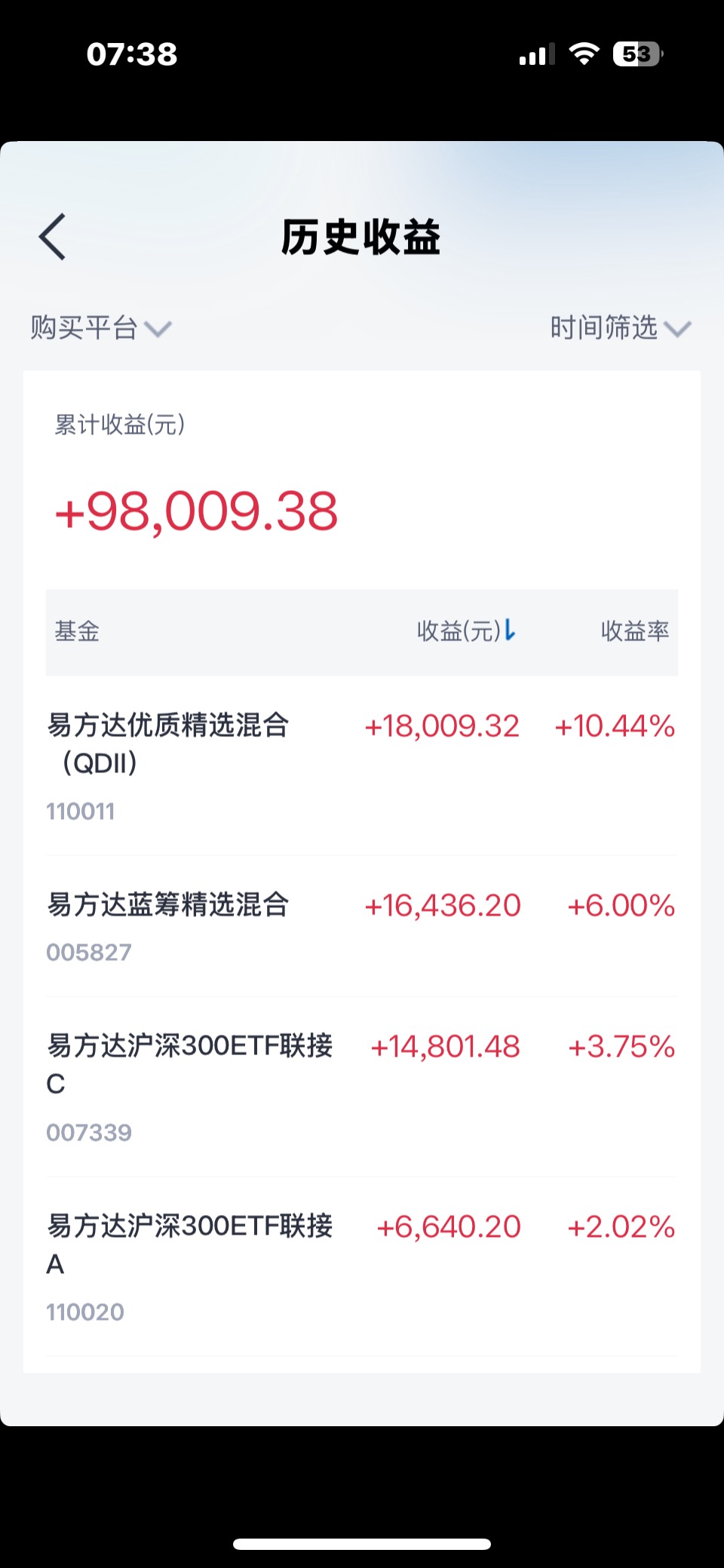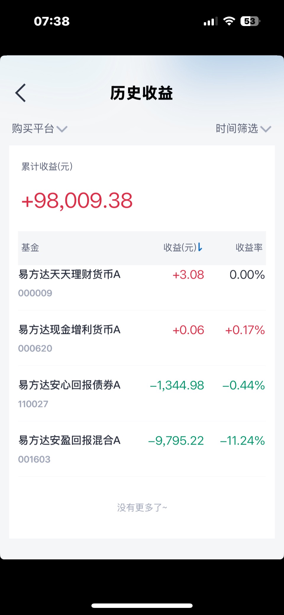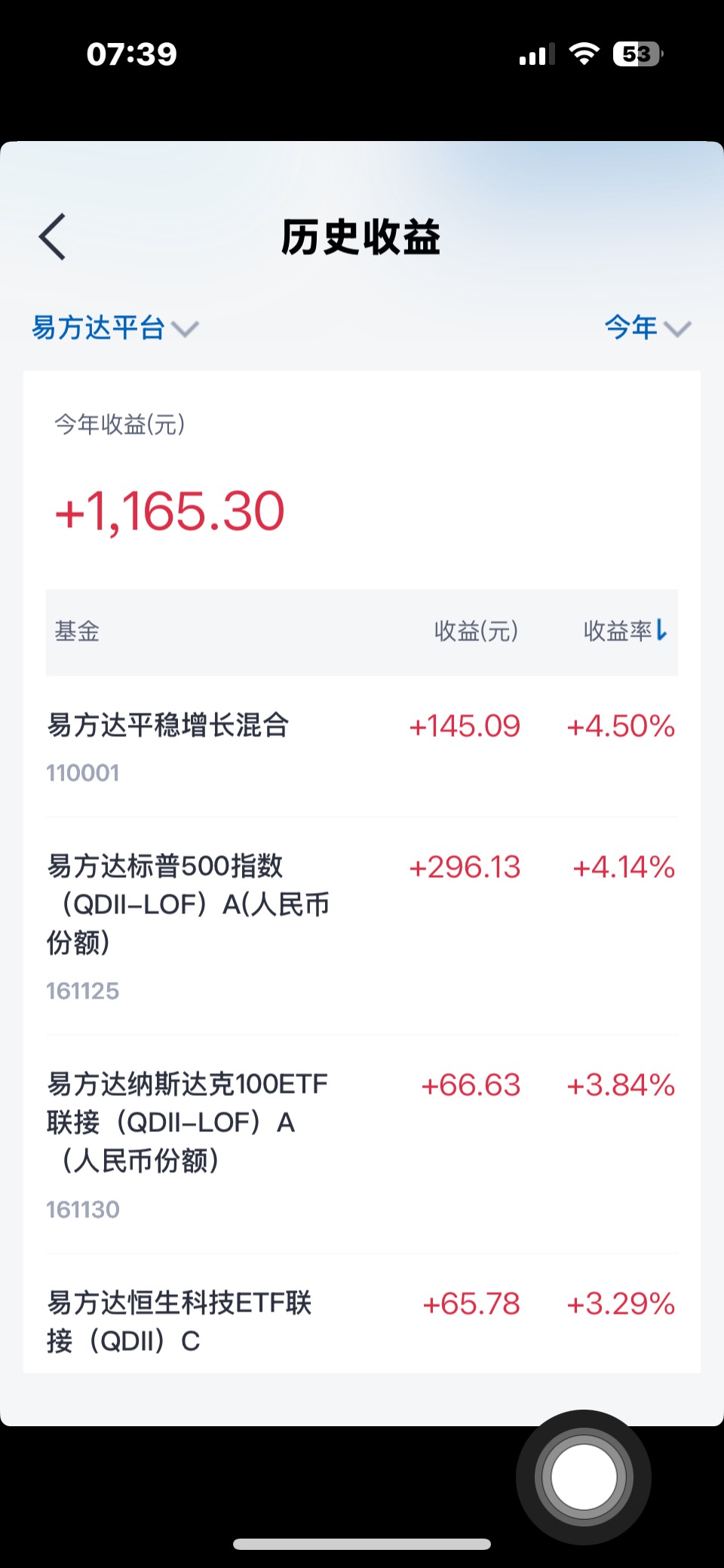2020年开通易方达e钱包,目前亏损基金仅剩清华总的易安心及易安盈。