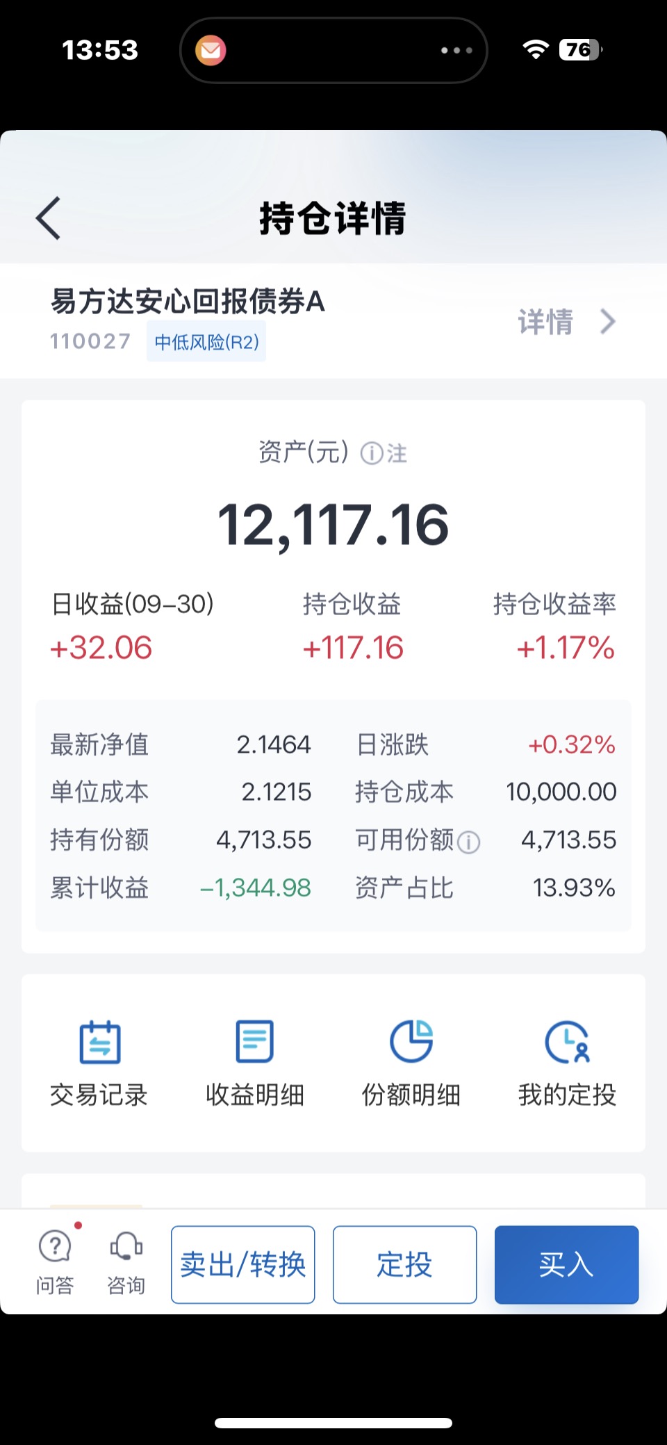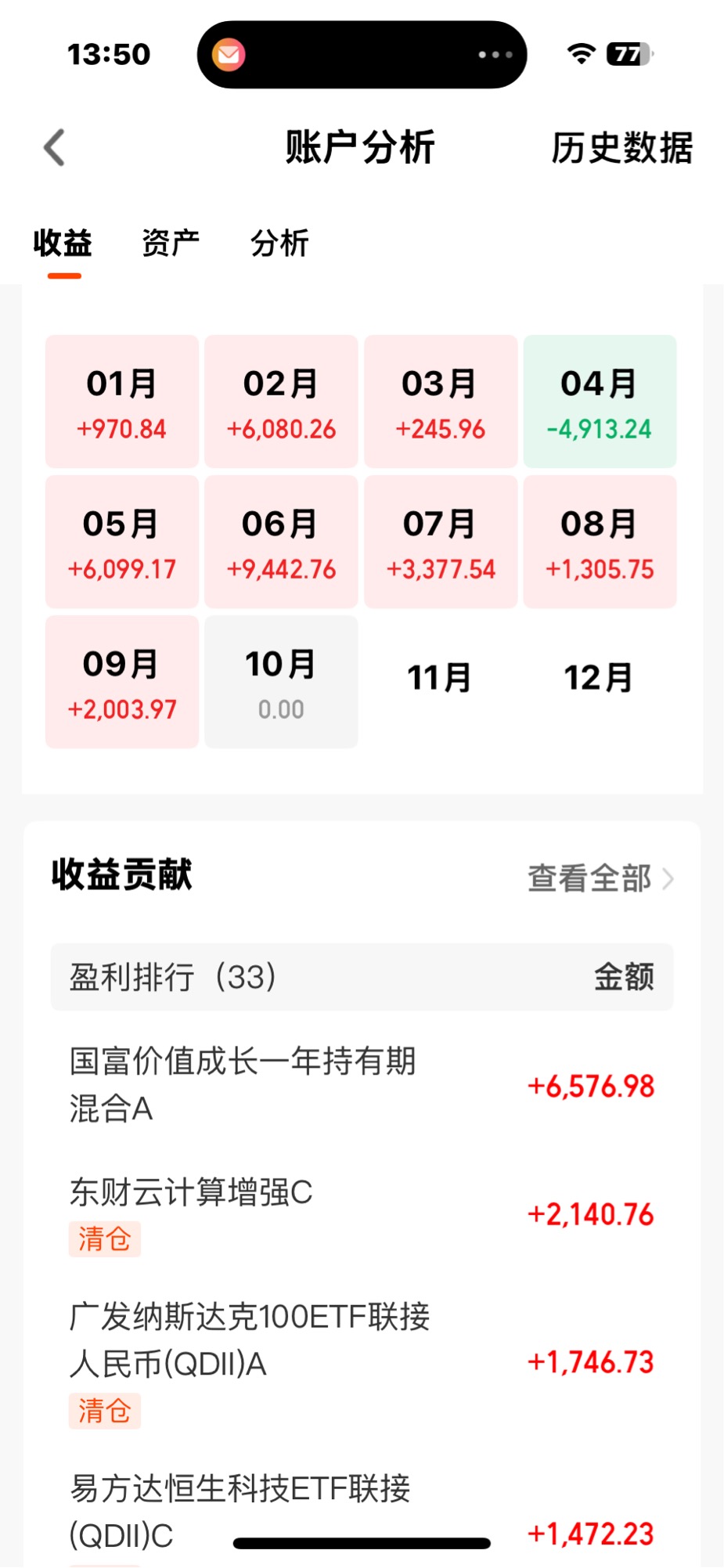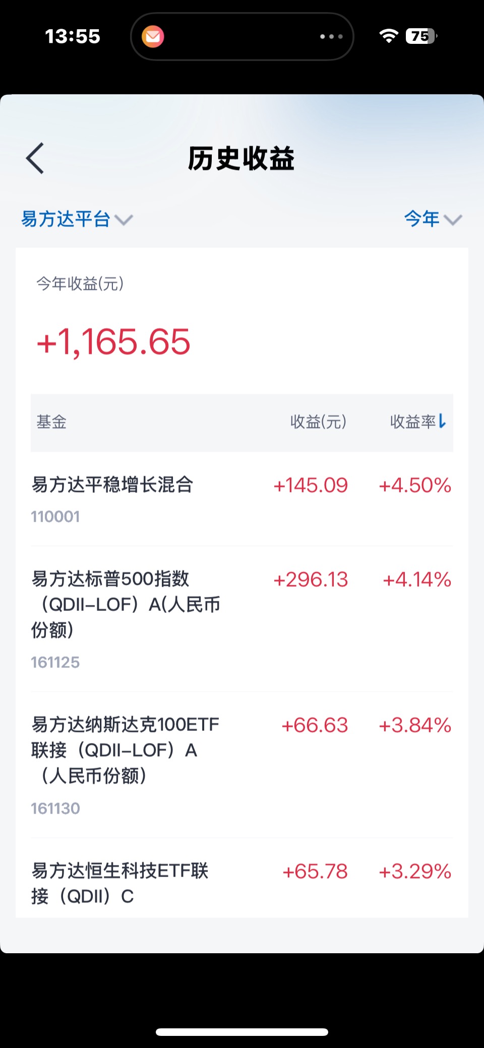 易方达基金持有4只基金,收益0.11万元;
