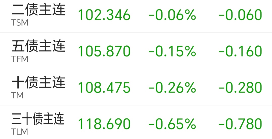 国债期货:雨天,国债期货今天是低开低走,全线收跌,而且跌幅比前两天要大一些。但是