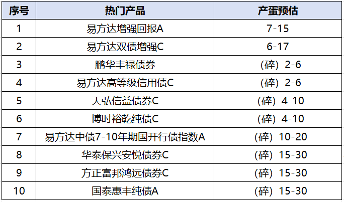 热门产品产蛋预估:(根据16:00行情预测,仅供参考,以实际产蛋为准)