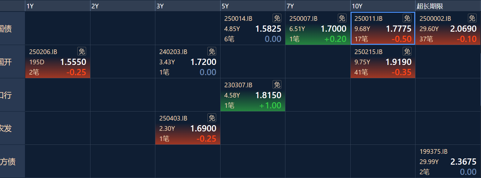 二、十年期国债收益率:1.7775 -0.005%(国债收益率越涨,债市越跌,两者反向关系)