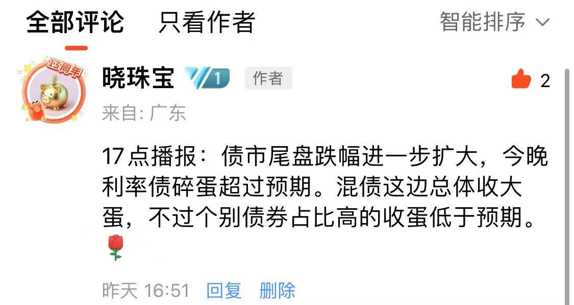注意,如果播报后,债市尾盘拉升或者跳水,17点左右我会在估值帖子的评论区更新情况。