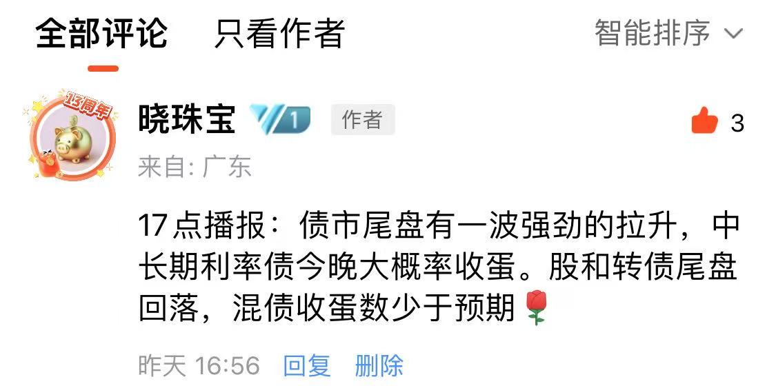 注意,如果播报后,债市尾盘拉升或者跳水,17点左右我会在估值帖子的评论区更新情况。