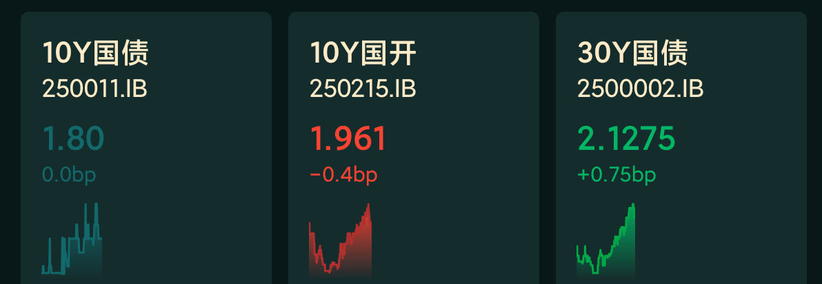 十年期国债收益率:1.8%,+0BP(国债收益率越跌,债市越涨)