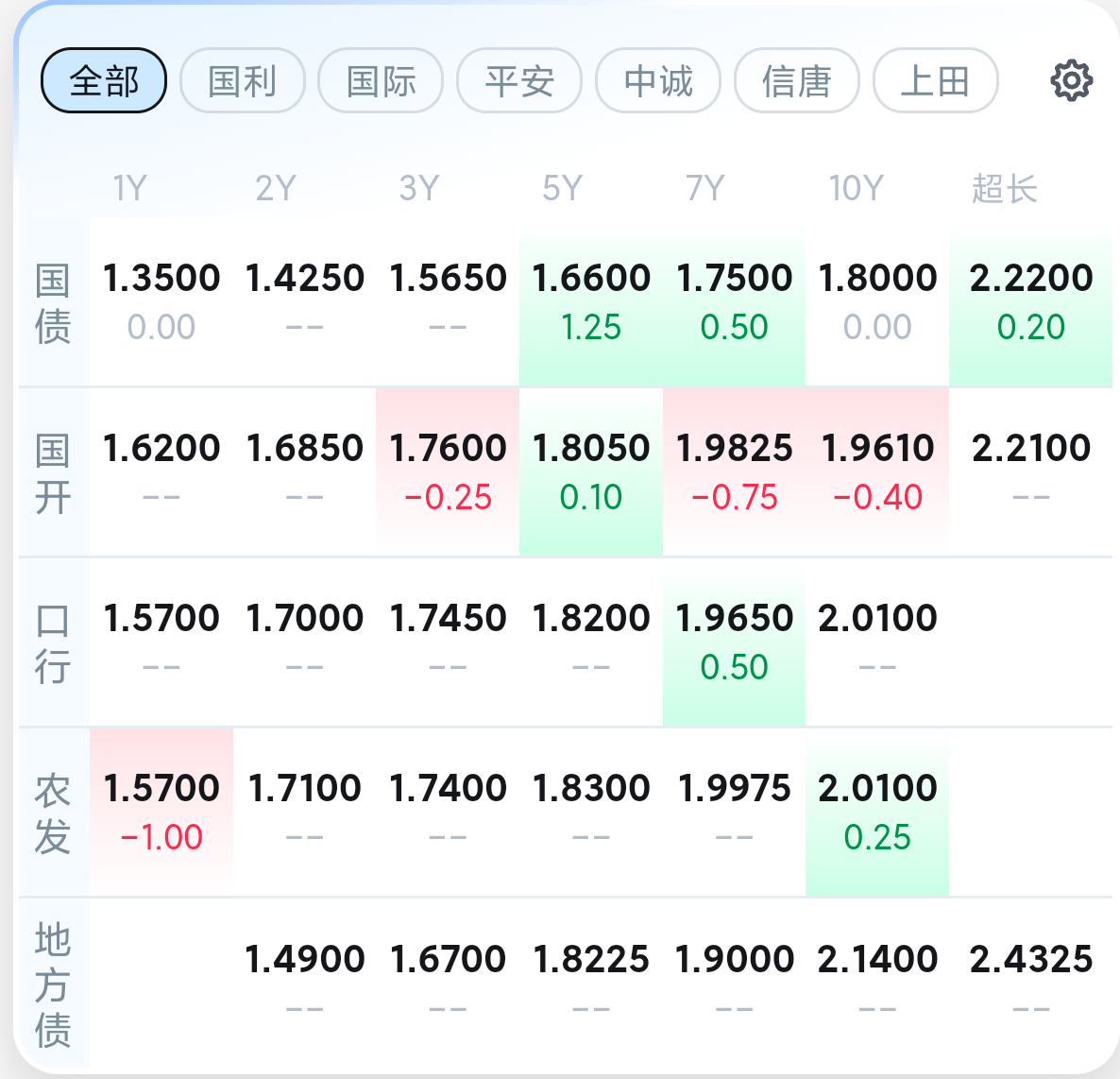 昨日作为长假前的调休工作日,银行间利率债交投清淡。今日是长假前倒数第二个交易日,资金面主旋律仍是跨季,央妈呵护力度较小,资金面均衡偏紧,权益市场三大指数集体收涨,股债跷跷板依旧比较明显,银行间主要利率债收益率涨跌不一,信用债配置盘入场,信用债跟随上涨。