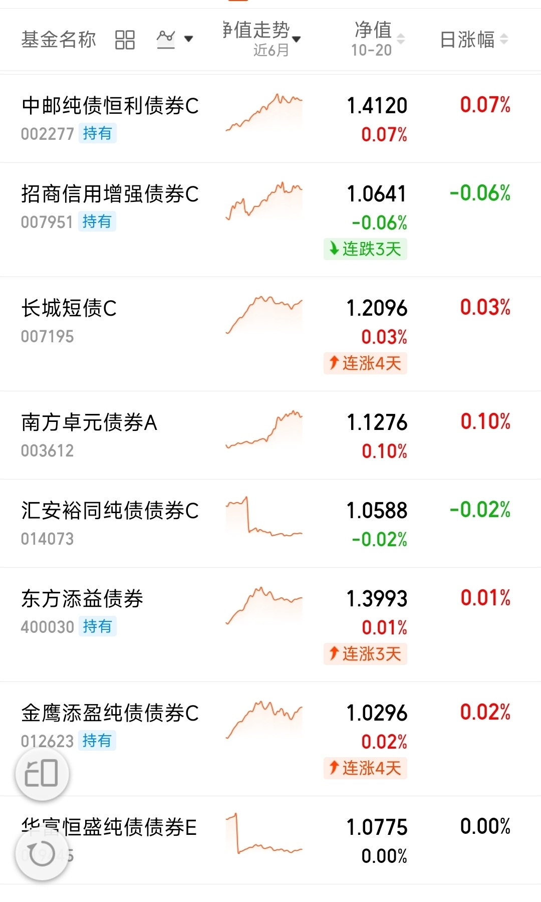 $中邮纯债恒利债券C$ 这管理费真良心,0.3%在混债里属最低一档,只投可转债和纯债波动小,今天收7个蛋美滋滋,近半年600多枚蛋业绩还很靠前。
