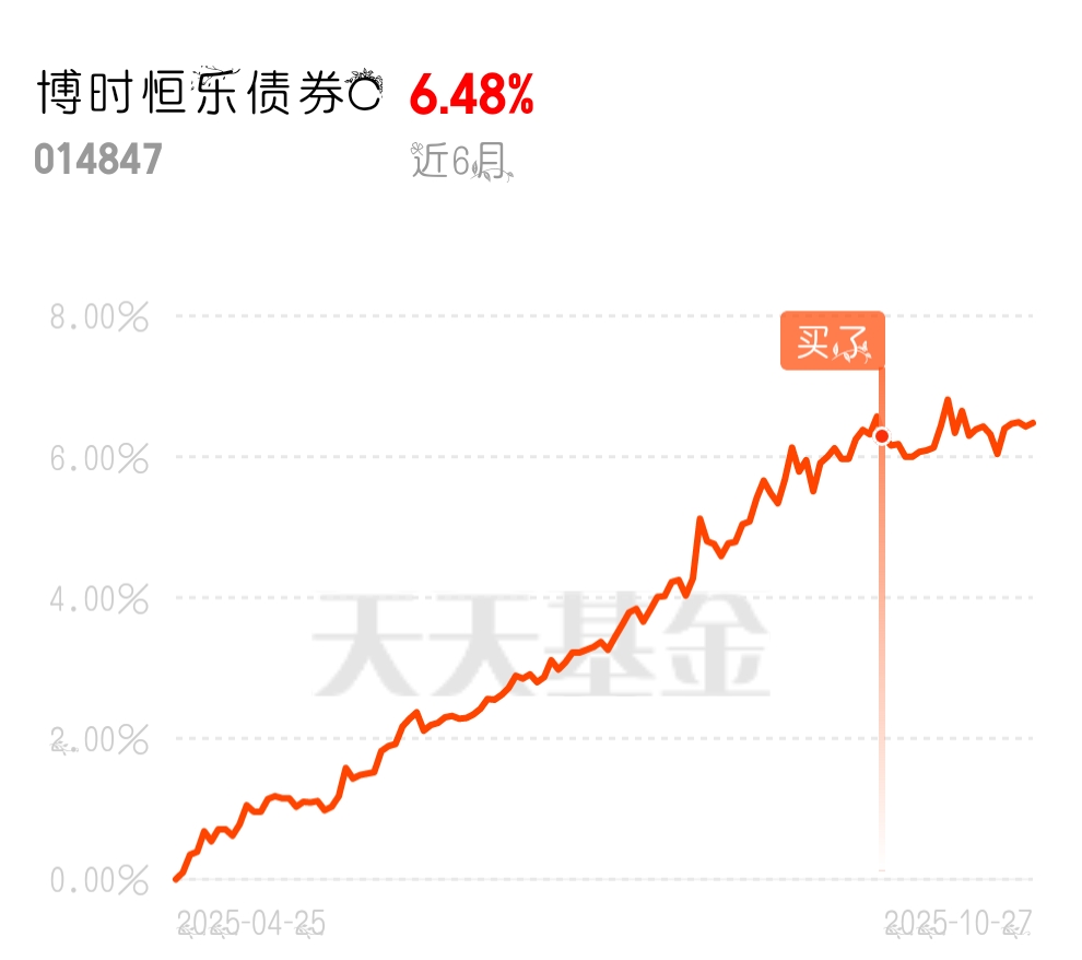 $博时恒乐债券C$ 昨天收了4个蛋,这波债市反弹行情抓得稳稳的,它的长期表现更是不错,半年收益率已稳稳超过6%。这只基金的债券和权益平衡得很好,债券打底保证收益,权益添彩赚超额,特别适合震荡市。最近央行实现净投放3000多亿,对债市呵护态度明确,上季度末货币政策委员会例会提了要“落实落细”适度宽松的货币政策,比之前更强调执行细节。对博时恒乐来说,流动性宽松意味着债券交易更活跃,基金经理调仓更方便,上周超长债收益率下行明显,它肯定趁机调整了持仓久期,赚了不少价差收益。再看它的权益仓配置,太懂市场了,基金能投主板、创业板股票,还能买港股通标的,选股范围特别广。近期中美经贸摩擦有不确定性,基金经理应该是加大了消费、医药等防御性板块的配置,这些板块上周在A股大跌时特别抗跌,反而贡献了收益。而且它还能投权益类基金,相当于分散了个股风险,就算单只股票跌了,其他基金的收益也能补回来。这种“灵活债券操作+分散权益配置”的模式,既能在债市回暖时拿高收益,又能在权益震荡时控风险,抱紧跟着吃肉没问题。#科技热点摊开业啦#