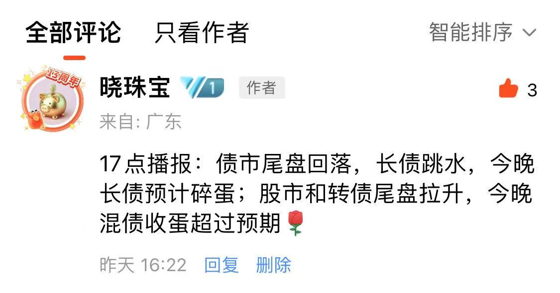 注意,如果播报后,债市尾盘拉升或者跳水,17点左右我会在估值帖子的评论区更新情况。