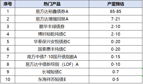 热门产品产蛋预估:(根据16:00行情预测,仅供参考,以实际产蛋为准)