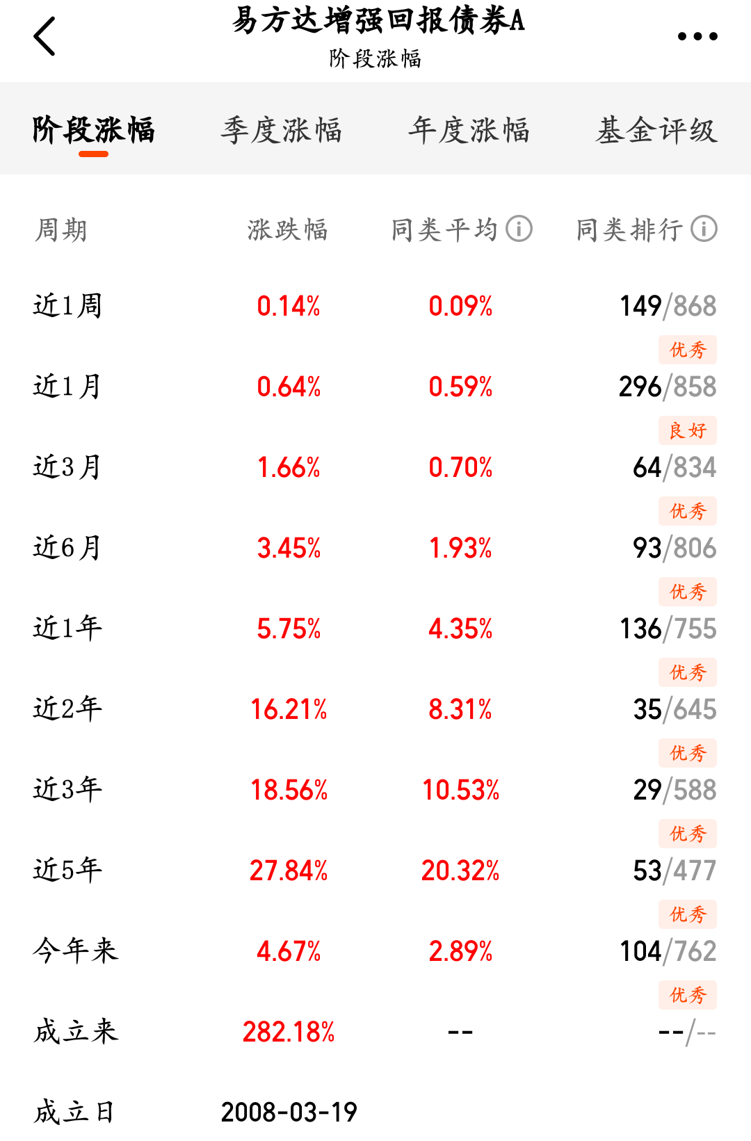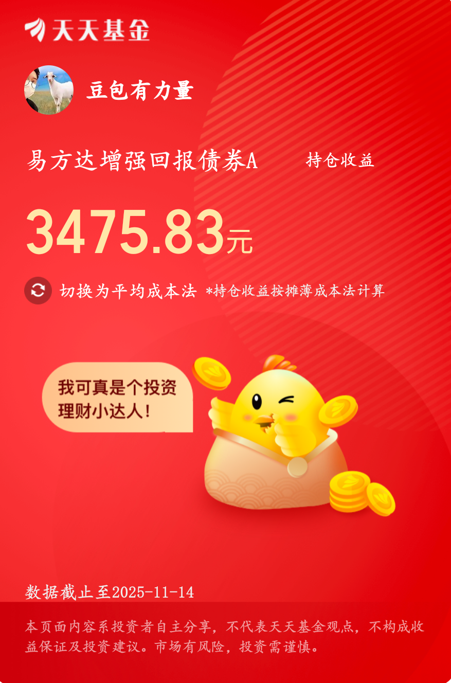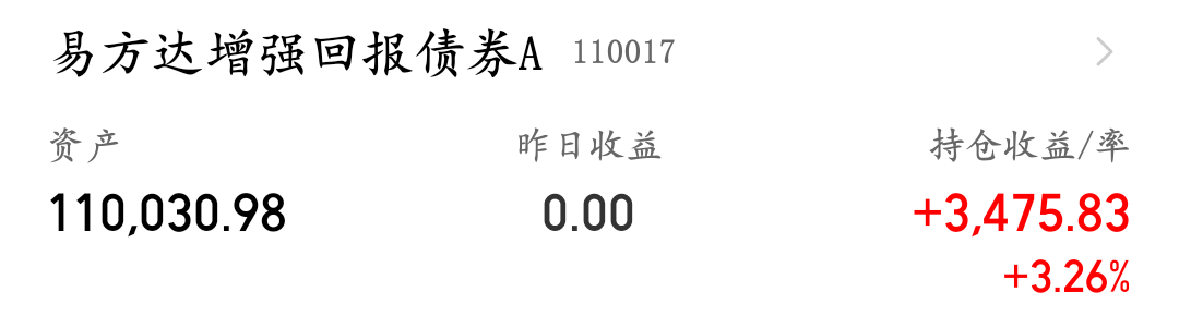 不过咱们的稳健策略整体表现其实还不错,布局的 $易方达增强回报债券A(OTCFUND|110017)$ 上周四收了14个蛋,持有收益又创新高了!