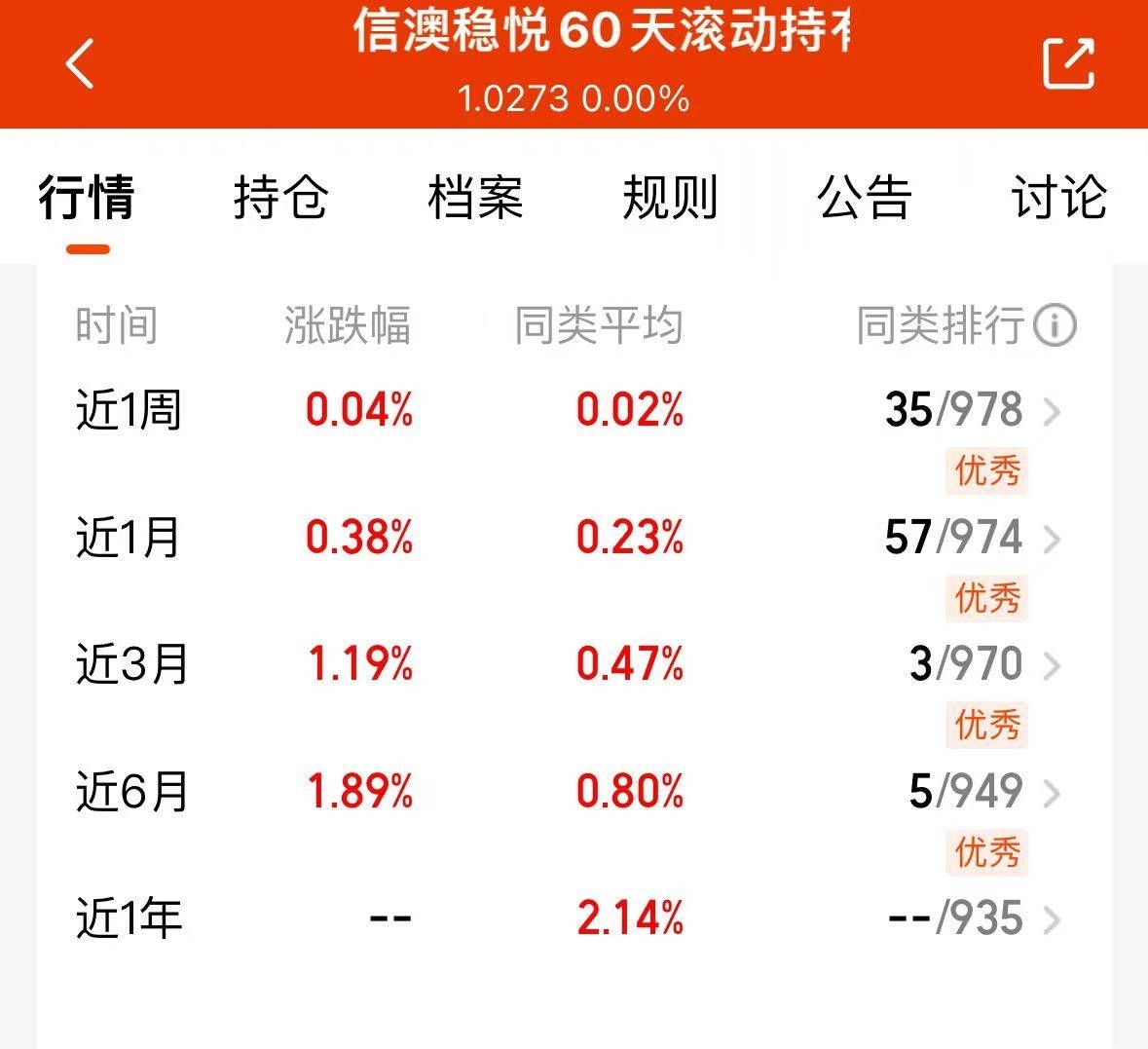 好基真的要拿得住信澳稳悦60天这三个月收了119个蛋债市趋势向好,拿着它就像每天