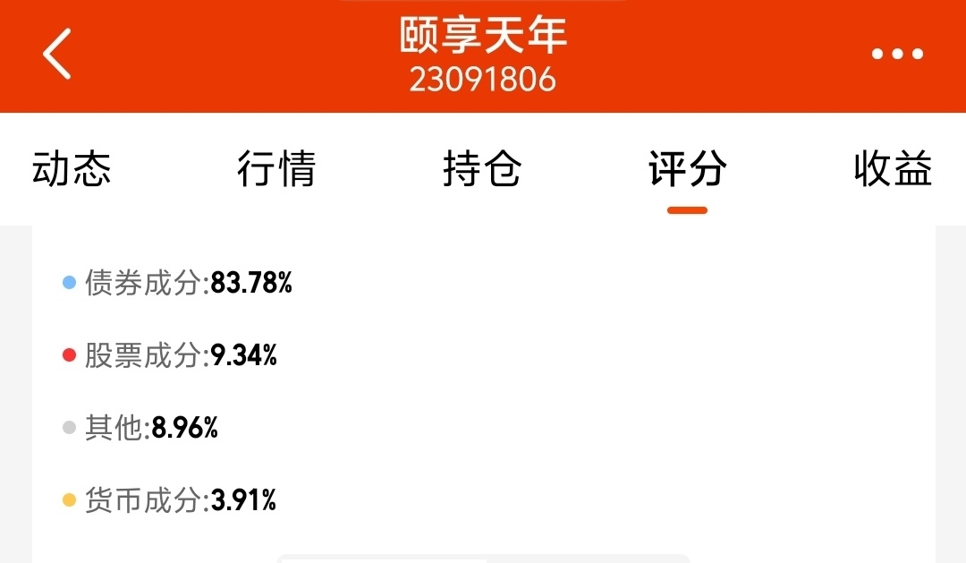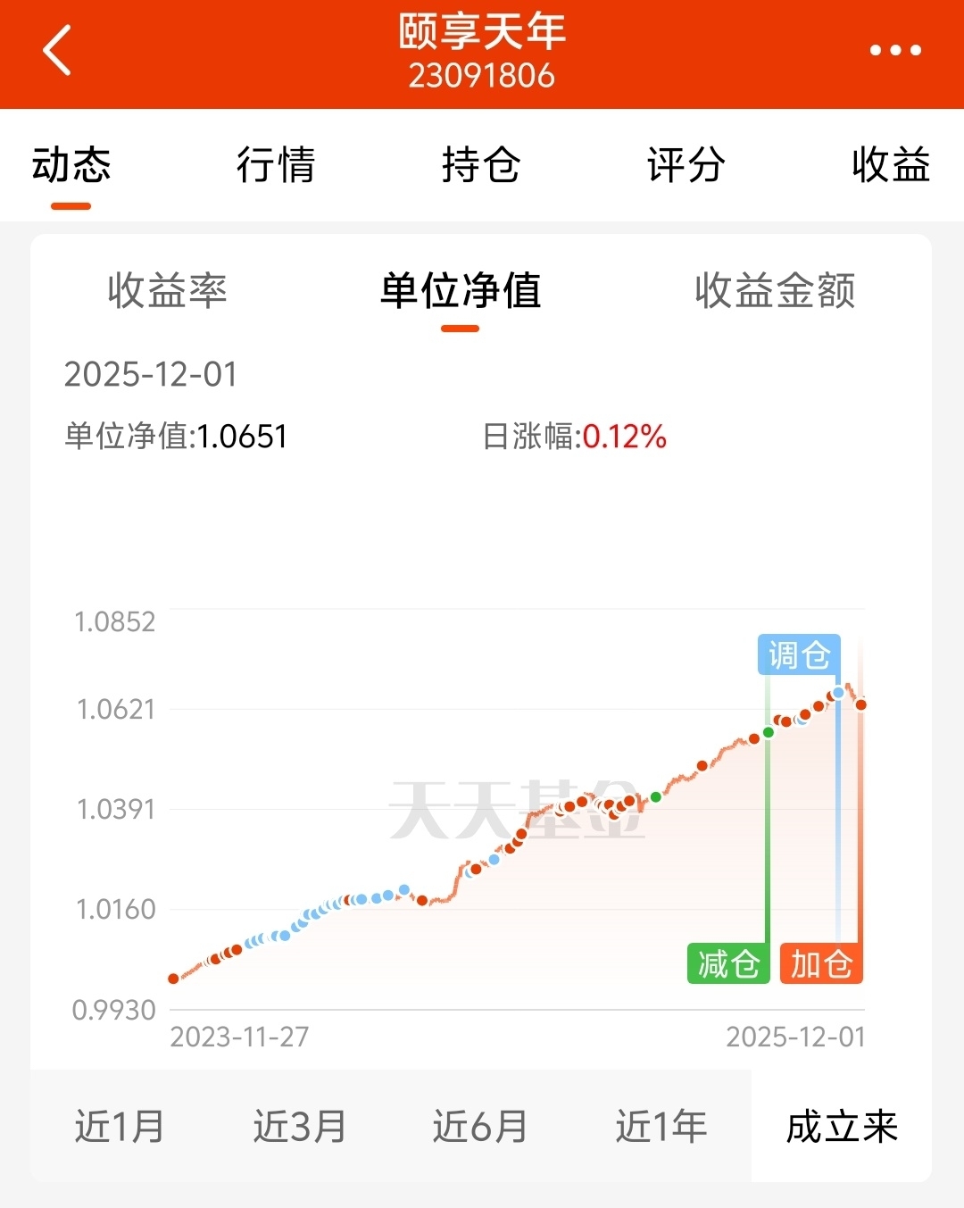既然股债两个市场明年预期波动依旧不低,风险与机遇并存,我觉得自己的稳健组合的配置结构还是挺适合明年的市场环境的。11月月初,我已经对组合~颐享天年做了一次调仓,降低了同业存单指数基金的配置比例,增配了短债基金和一只长期绩优稳健的一级债基,组合目前的股债配比大概是1:9,问题不大,拿住就好,坐等明年收益即可。