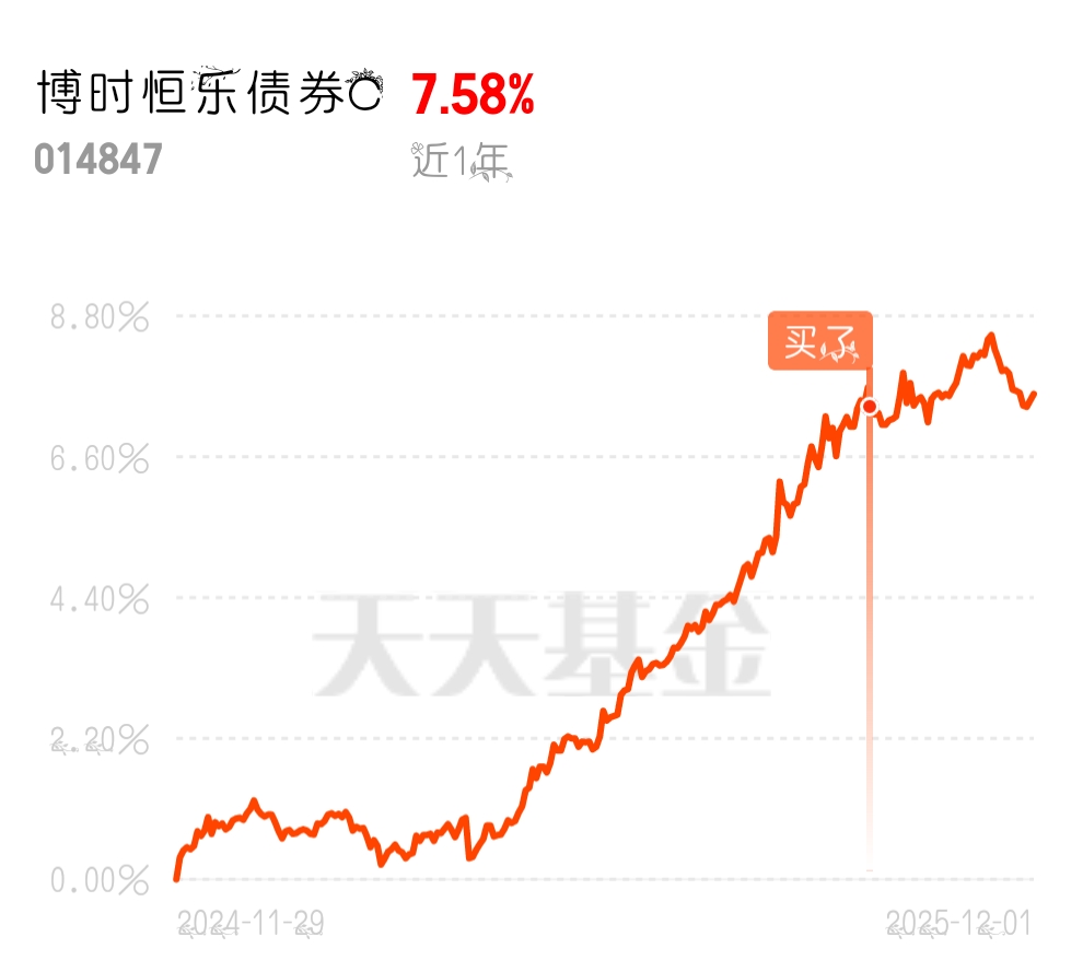 债市回暖,$博时恒乐债券C$ 表现亮眼,连红两天收蛋将近20个,近半年累计涨了5.4%,业绩排名稳居同类产品前列。近期其单日限额降到了100万,这波规模控制为基金的长期稳定运作夯实了基础。近期有两个利好催化了业绩,一是金融支持融资平台化债政策落地,潘功胜行长明确要建化债框架,给地方债"排雷",基金重仓的城投债安全性大幅提升;二是美联储10月降息后中美利差收窄,外资回流国内债市,利率债品种受益明显,基金持仓里的25国开06、23附息国债等价格稳步上涨。这只基金债券部分占比高,但不是死守,久期灵活调整,三季度债市调整时逆向加仓,现在吃到了收益率下行的红利。它的权益仓更是亮点,虽然股票仓位占比只有20%左右,但行业分散加个股集中,最近爆发的热点一个没落下:比如有色金属里的铜陵有色和传媒里的世纪华通,受益于新能源车用铜需求以及政策支持数字文化,这些板块在三季度科技行情中贡献了不少超额收益。还有经理积极调仓,比如8月减仓算力股,转战贵金属和风电,踩点很准。现在A股在3900点附近,红利股和科技股轮动,恒乐“债券抗跌+权益跟涨”的双保险策略,尤其适合当前分化市,对接下来表现有信心!#今年你的投资目标达成了吗?#