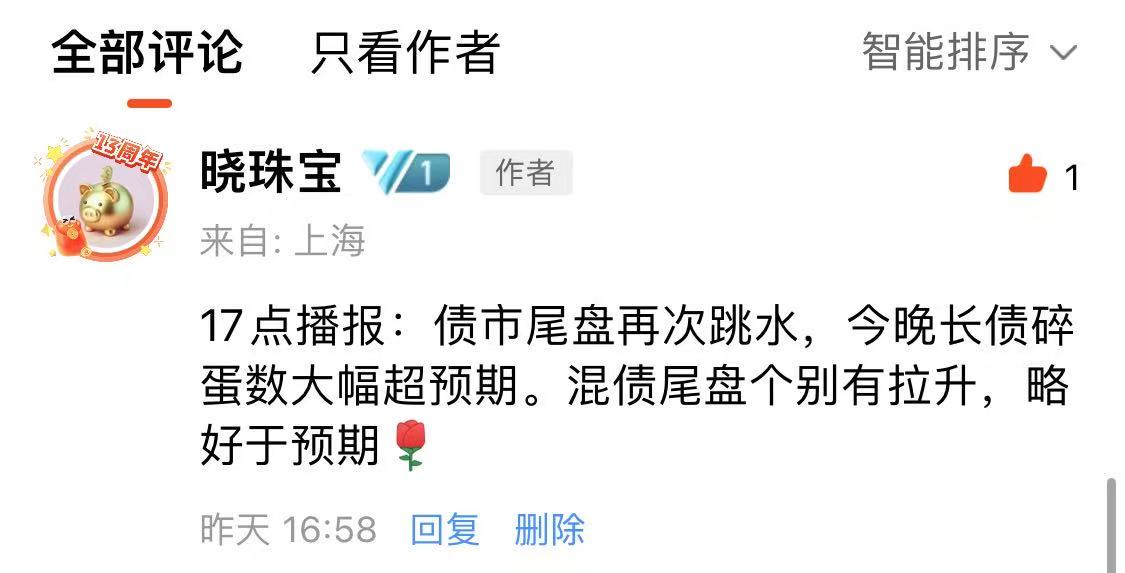 注意,如果播报后,债市尾盘拉升或者跳水,17点左右我会在估值帖子的评论区更新情况。