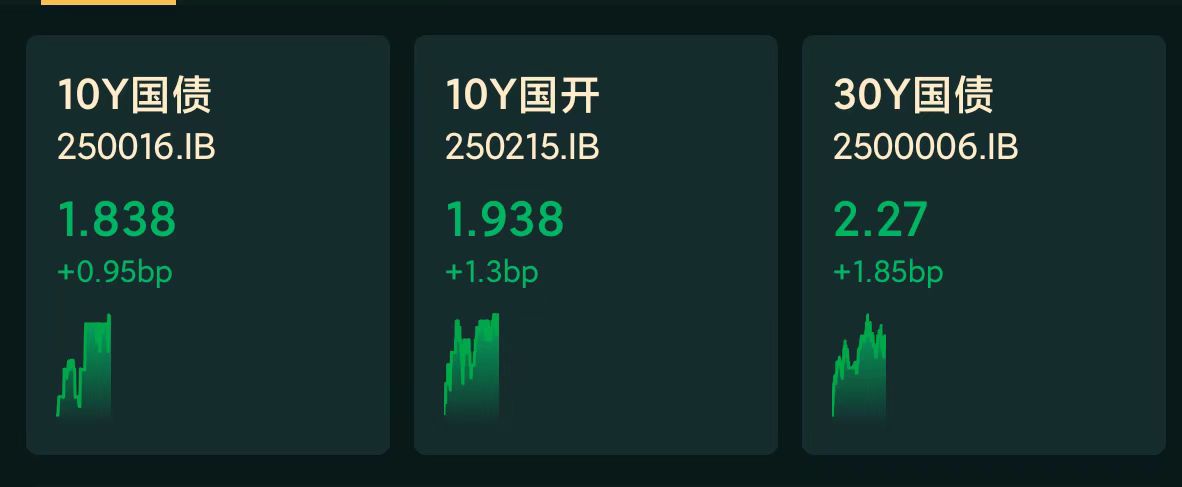 十年期国债收益率:1.839%,+0.5BP(国债收益率越跌,债市越涨)
