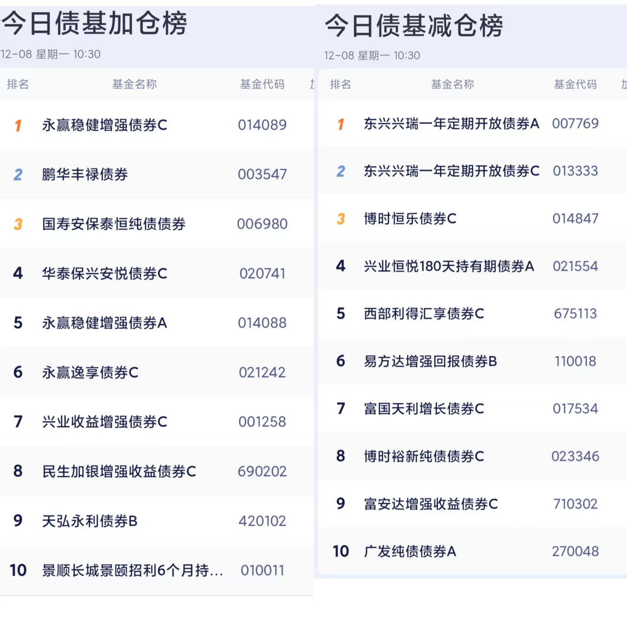 $永赢稳健增强债券C(OTCFUND|014089)$$鹏华丰禄债券(OTCFUND|003547)$$国寿安保泰恒纯债债券(OTCFUND|006980)$$永赢稳健增强债券A(OTCFUND|014088)$$中邮纯债恒利债券C(OTCFUND|002277)$$兴业收益增强债券C(OTCFUND|001258)$$天弘永利债券B(OTCFUND|420102)$$博时恒乐债券C(OTCFUND|014847)$$西部利得汇享债券C(OTCFUND|675113)$$易方达增强回报债券B(OTCFUND|110018)$