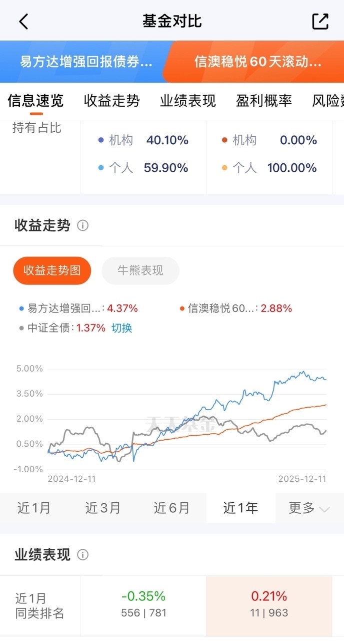大家都在找好基,债市也给力争气信$信澳稳悦60天滚动持有债券C$ 凭真本事吃饭,变化2.88%远超银行,闲钱放这儿感觉更值$易方达增强回报债券A$