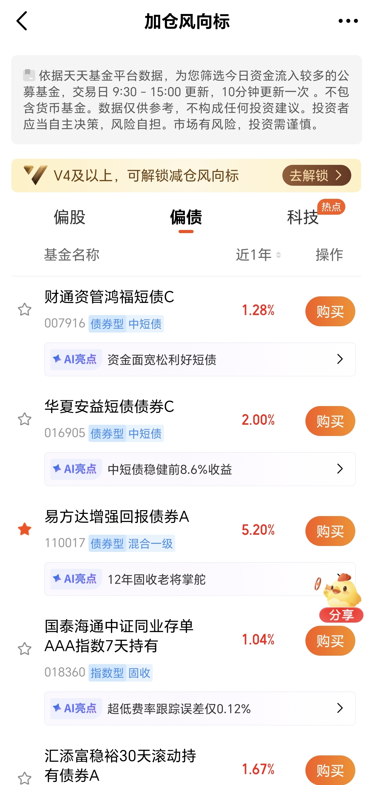 天天基金加仓风向标显示,易方达增强回报债券A在偏债排行榜中位居前列,昨天显示的数据是排名第一。从三季报来看,规模达到267.73亿,同比增加超过40亿。在持有人结构方面,机构占比在40%左右,显示个人和机构对该产品的认可。