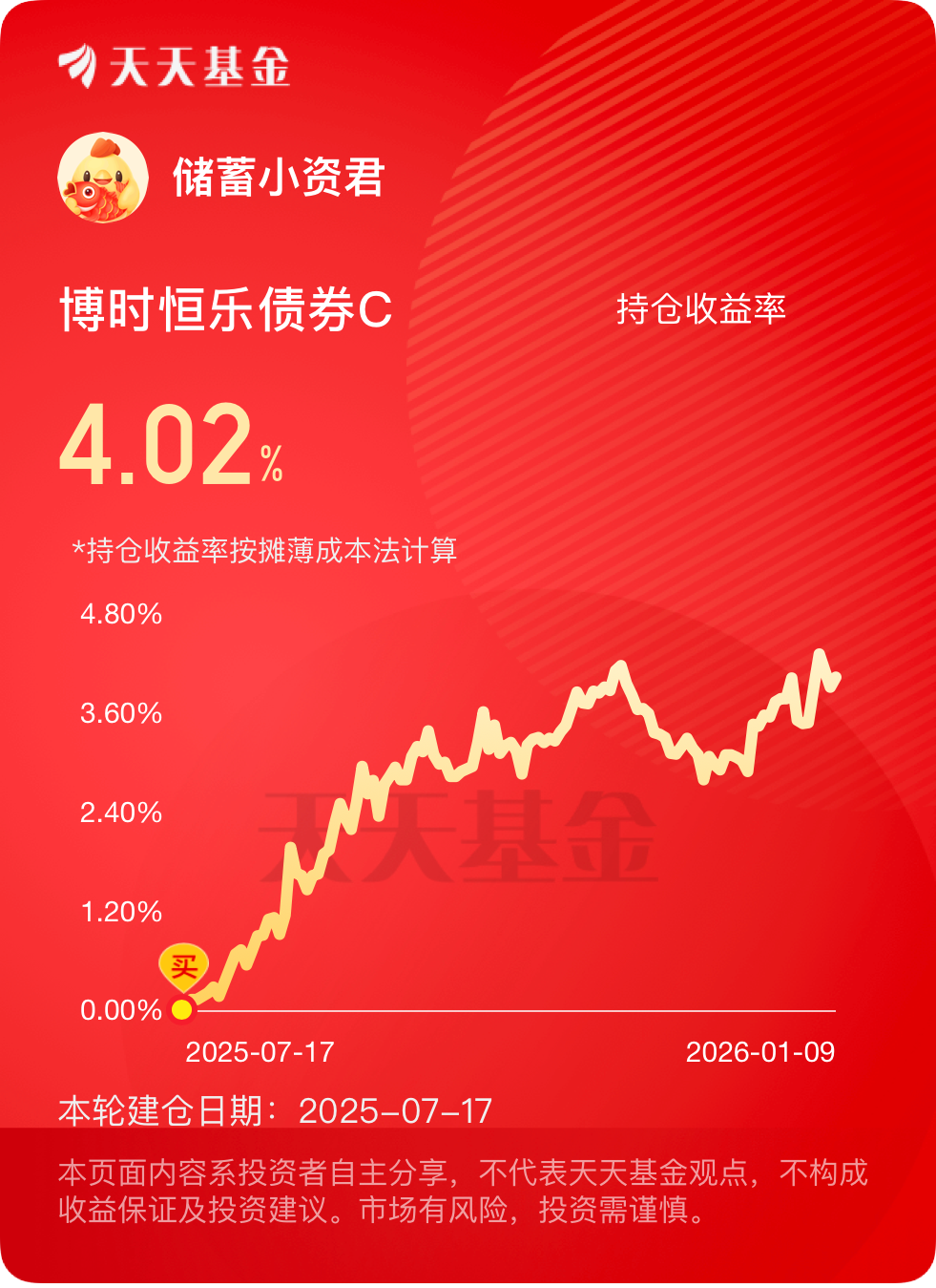 近期债市回温,股市走强,固收+收益嘎嘎香,$博时恒乐债券C$ 轻松拿下十几蛋,近一周囤蛋50多个,近一个月涨幅稳超1%,这业绩妥妥同类第一梯队,关键是波动还特别小,持有体验感满分。近期地方置换债的集中发行,1月5日山东已经率先发行了包含置换债在内的723.81亿元地方债,全年6万亿元的置换债也会在今年全部发行完毕。这个政策对债基的利好太关键了,置换债的发行能有效缓释地方政府的债务压力,减少利息支出,让整个信用环境更稳定。这只基金的债券仓位里,有不少地方政府相关的高等级信用债,随着化债政策的推进,这些债券的违约风险大幅降低,估值也在稳步修复,这也是近期基金净值稳步上涨的重要支撑。再看它的权益部分,更是惊喜不断,重点布局了制造业板块,像铜陵有色、中国宏桥这些制造业龙头股都在重仓名单里。近期制造业板块迎来多重利好,一方面是央行的流动性支持让企业融资成本降低,另一方面是民间投资政策加码,在铁路、核电等领域拓宽民间投资空间,带动了相关制造业企业的业绩回升。眼下债市有政策护航,这基权益抓得准,对后续表现很看好!#2026年 你最看好哪些投资赛道?#