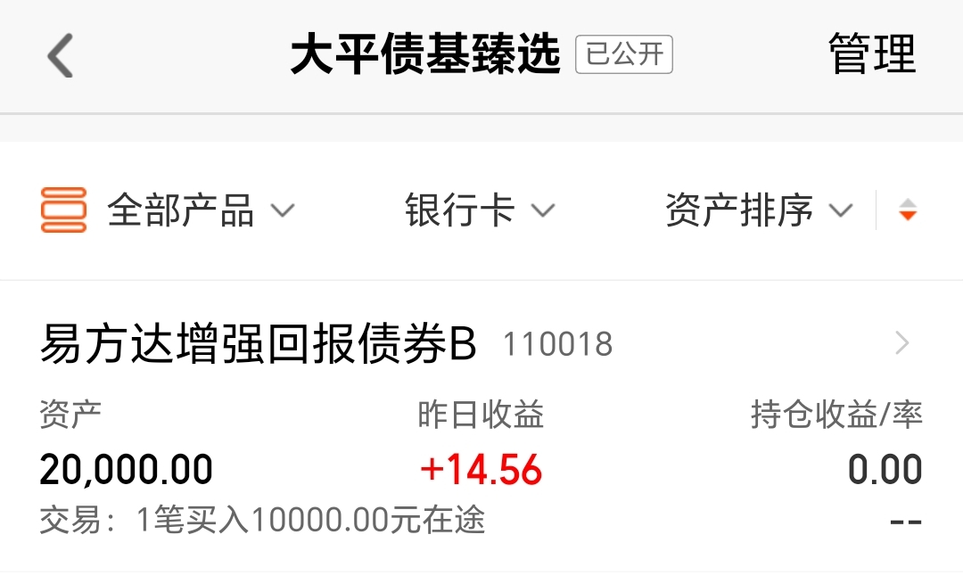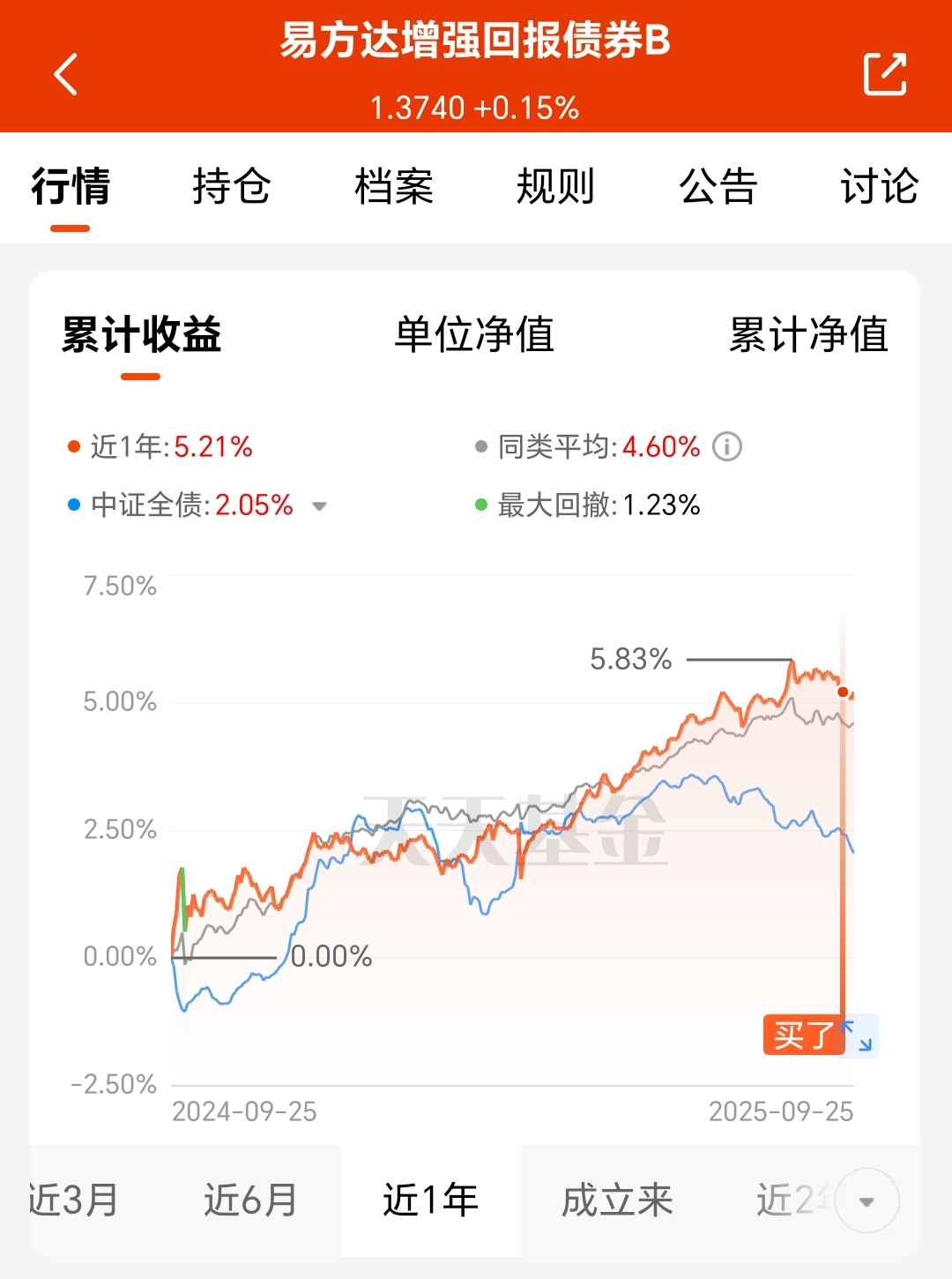 今天我买入$易方达增强回报债券B(OTCFUND|110018)$1万块钱。