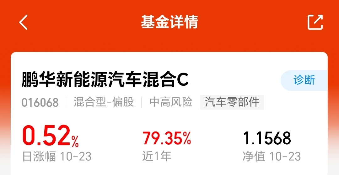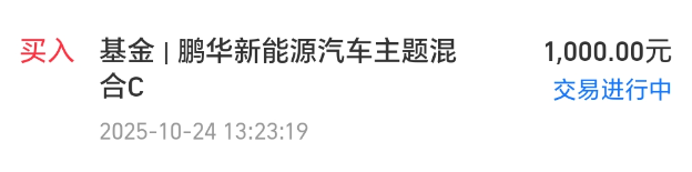 今天我买入$鹏华新能源汽车混合C(OTCFUND|016068)$1000块钱。