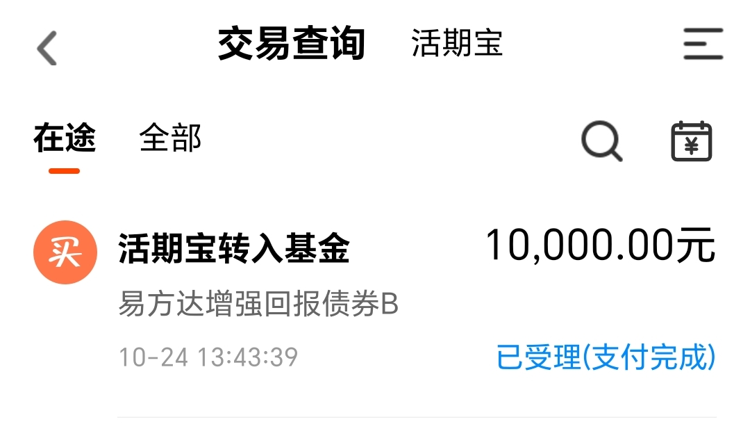 今天我买入$易方达增强回报债券B(OTCFUND|110018)$1万块钱。