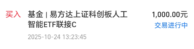 今天我买入$易方达科创人工智能ETF联接C(OTCFUND|023565)$1000块钱。
