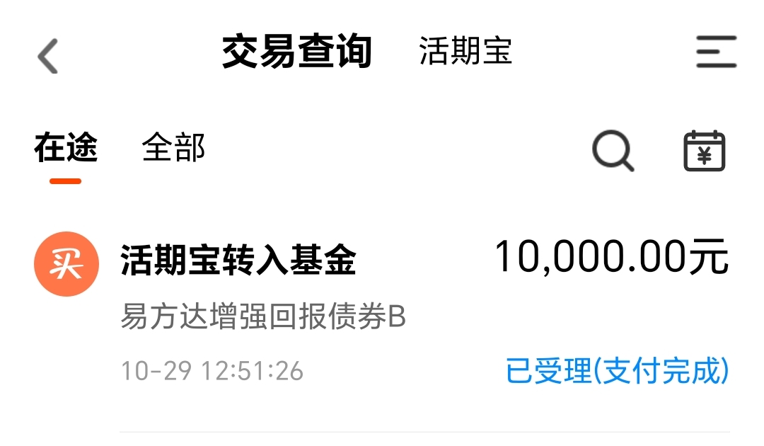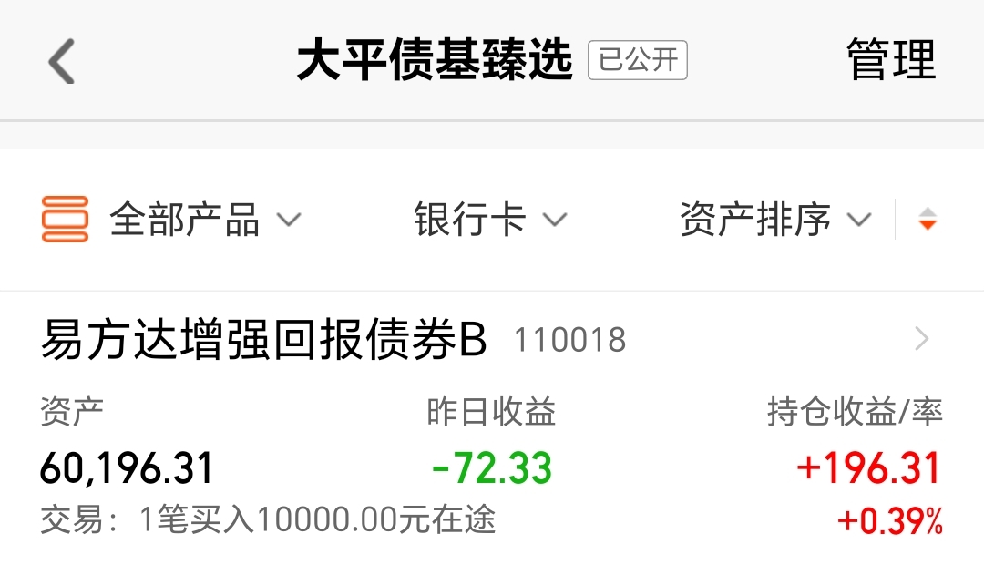 今天我买入 $易方达增强回报债券B(OTCFUND|110018)$1万块钱。