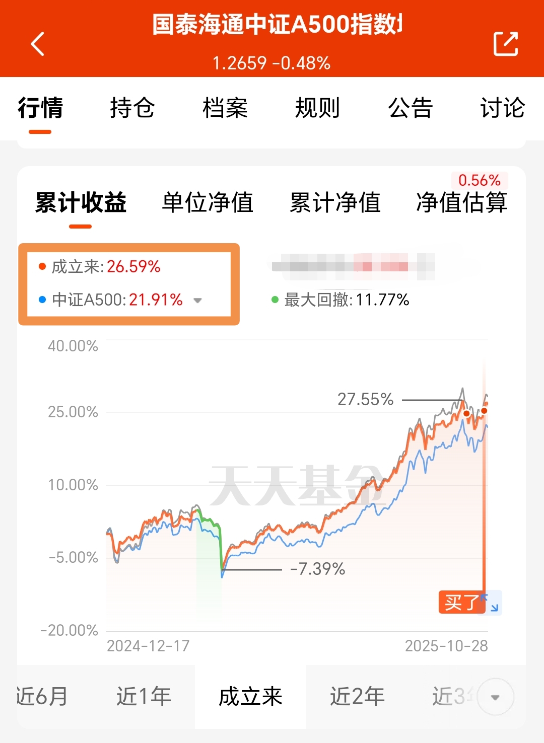 这段时间我发现收益率跑不过A500指数了,主要是板块轮动速度太快了。与其两头挨打,我还是老老实实买回A500吧,趁着它快要创新高,我加仓。