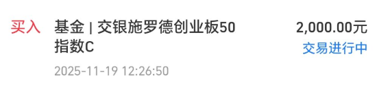 今天我买入$交银创业板50指数C(OTCFUND|007465)$2000元。