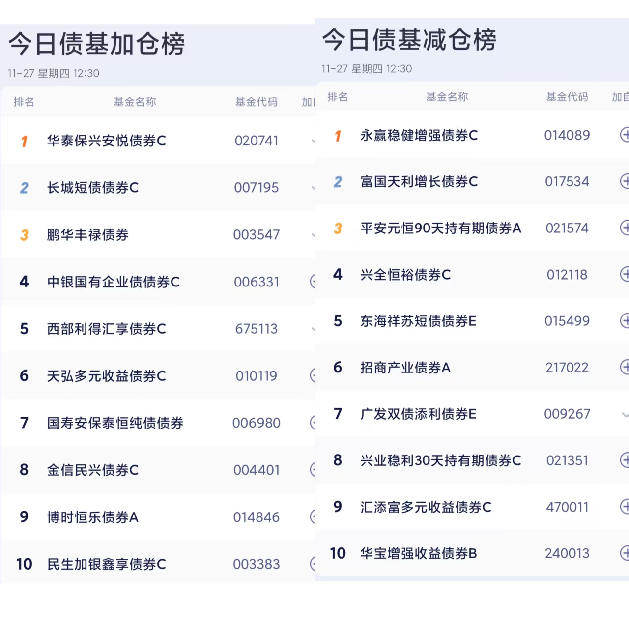 六、债券基金加减仓榜单