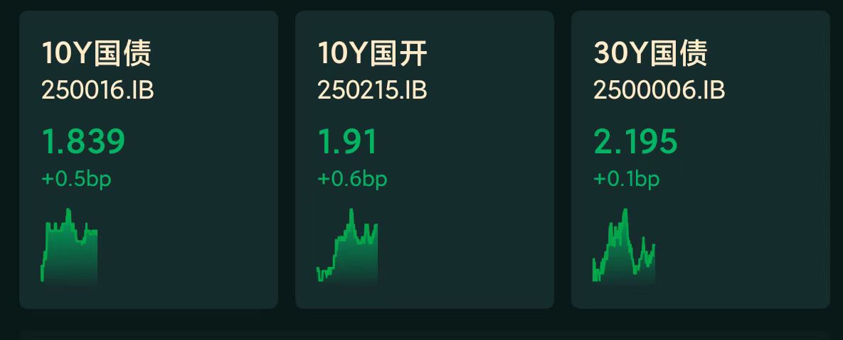 十年期国债收益率:1.839%,+0.5BP(国债收益率越跌,债市越涨)