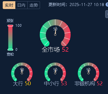 DR001报1.31%左右,DR007报1.43%左右,资金情绪均衡偏紧(CNEX资金面情绪指数在52)
