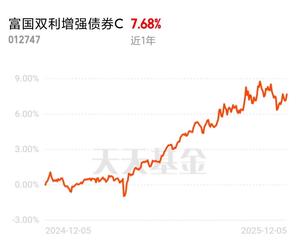 当前易方达增强回报B一直没红,转而多看了眼富国双利增强C——近1周涨0.5%、近