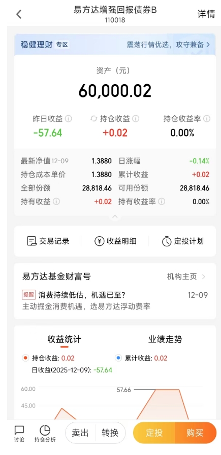 $易方达增强回报债券B(OTCFUND|110018)$加仓2万,年底了,忙忙碌碌一年,得保住盈利才是呀,小白白也在找“稳篮子”装收益,易方达增强回报正好适配,它既能守住钱包,又能悄悄赚点超额。