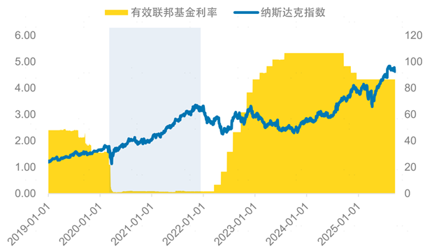 美联储此次降息是对全球经济增速放缓的主动应对,但市场反应却呈现分化特征。以科技股为主的纳斯达克指数当日小幅下跌,反映出市场对前期涨幅的修正需求。然而,这并未改变降息对成长股的长期利好逻辑。历史数据显示,美联储降息周期中,成长股可能因估值压力缓解而获得超额收益。例如,2019年美联储开启降息周期后,纳斯达克指数迎来两年长牛,区间累计上涨超60%(数据来源:WIND),科技与金融板块领涨。当前A股市场同样面临类似机遇:成长股估值处于历史低位,而降息带来的无风险利率下行,或将显著提升其未来现金流的现值值得关注。
