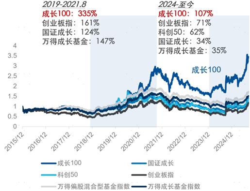 成长100经受住了数据的检验——2024年至今,成长100指数收益达107%,是创业板指71%的1.5倍;2025年至今收益49.7%,持续领跑市场。长期表现更令人瞩目:2013至今年化收益18.2%,其中盈利增长贡献23.8%,印证"业绩驱动"的核心逻辑。