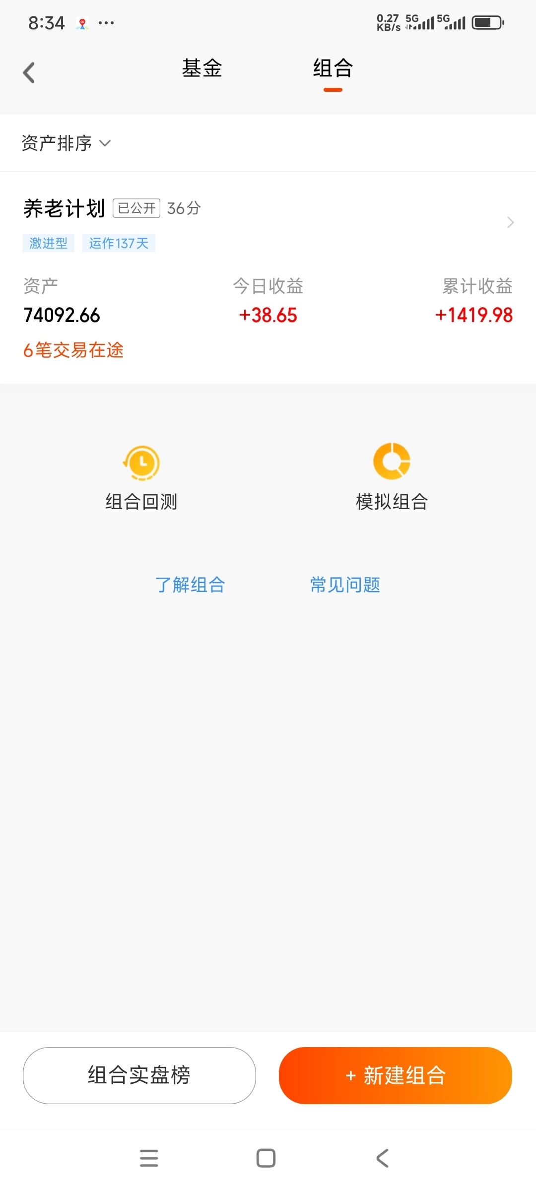 今日收益:38元,累计收益:1419元。