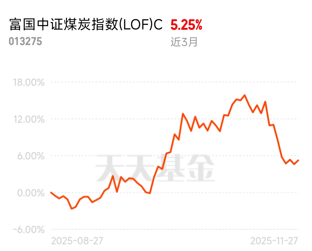 近期沪深300ETF联接A有点磨人,倒是在富国中证煤炭C上看到些亮点近3个月涨了5%,跑得稳多数同类;0.44%的年化跟踪误差贴得紧,十年老将管理,重仓神华、陕煤这些央企煤炭核心资产,顺周期+高分红,跌得最狠时134天就收复失地,拿得稳当。