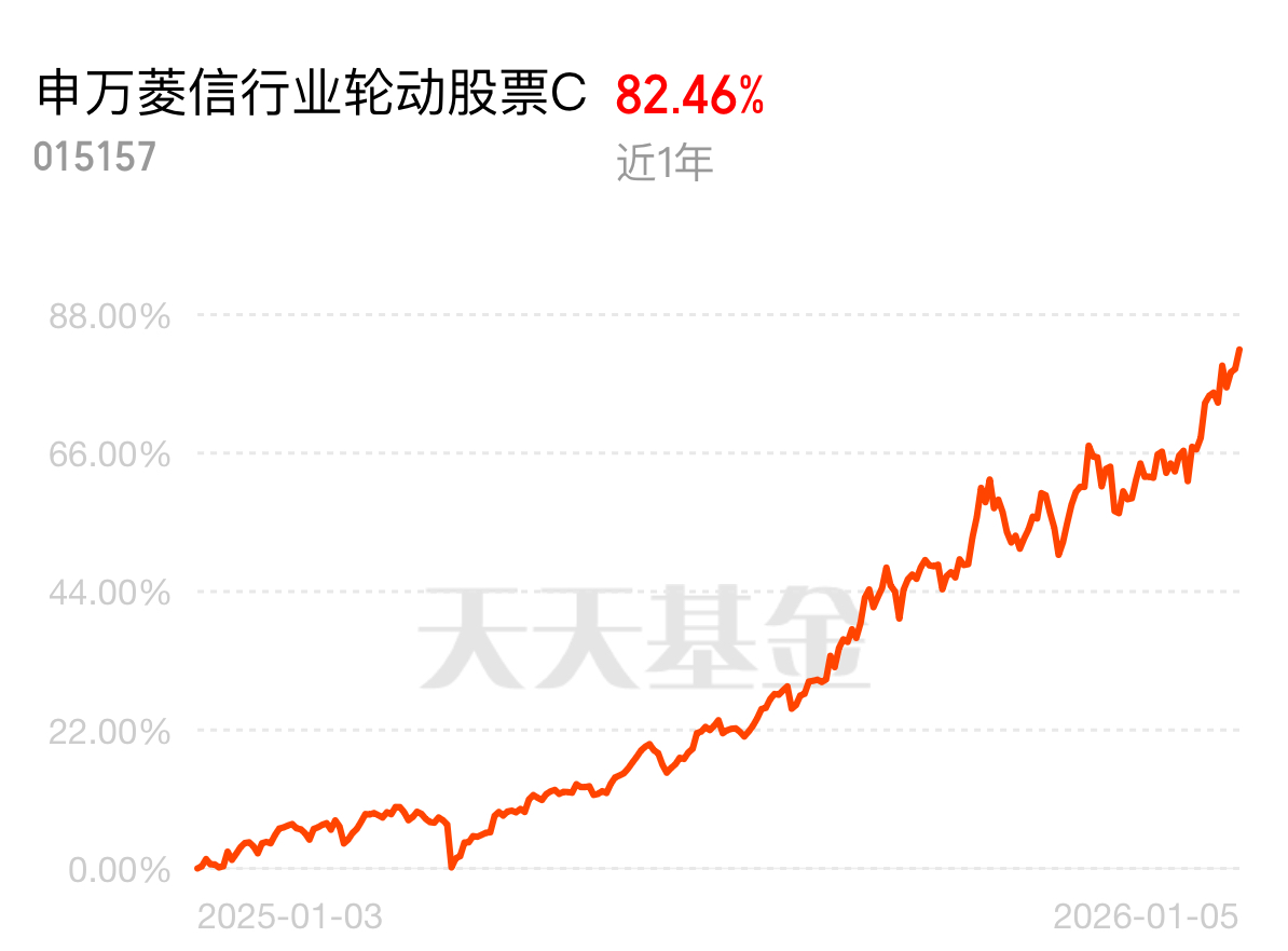 有色金属延续上行态势,近 3 日涨近 8 个点领跑市场。申万菱信行业轮动 C 重仓紫金矿业等优质股,今日估值超 3 点,近 1 年 82.46%,跑赢 97% 同类、回撤优于 91%,当前布局正划算!$申万菱信行业轮动股票C$