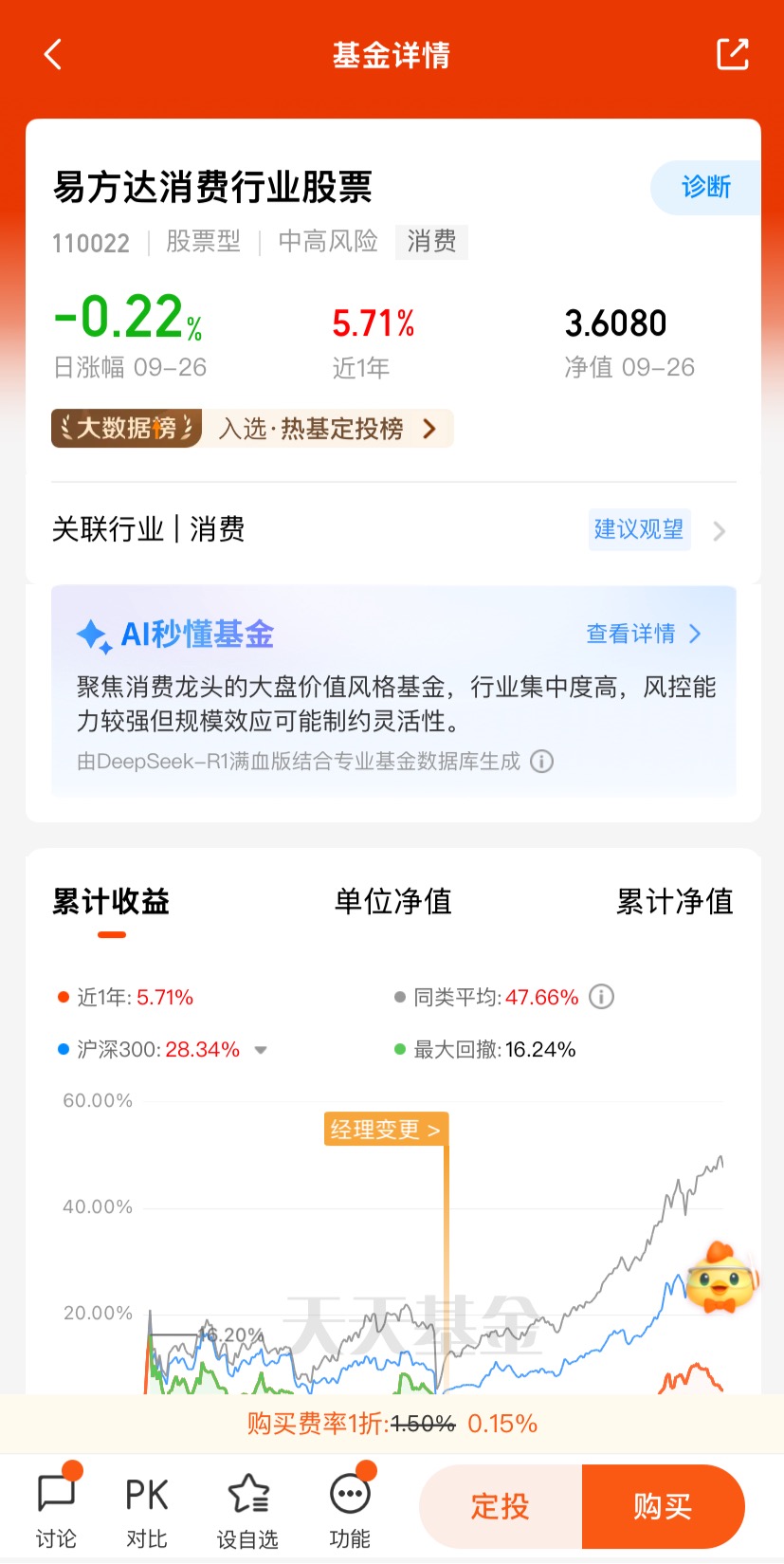 两方向搭配可兼顾进攻与防守:消费板块捕捉短期景气,红利资产提供长期安全垫,符合“稳中求进”的配置逻辑,适合国庆假期前调整持仓结构。@易方达基金