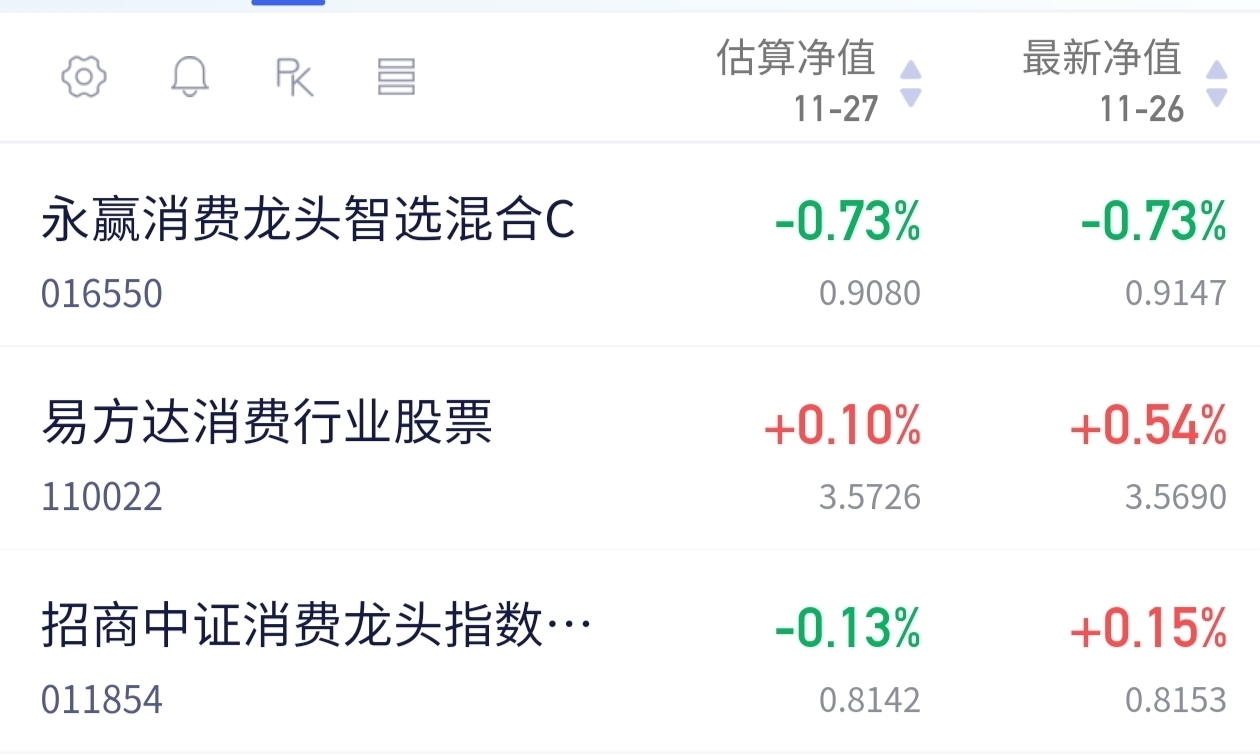 $易方达消费行业股票$ 估值+0.1%,加油!