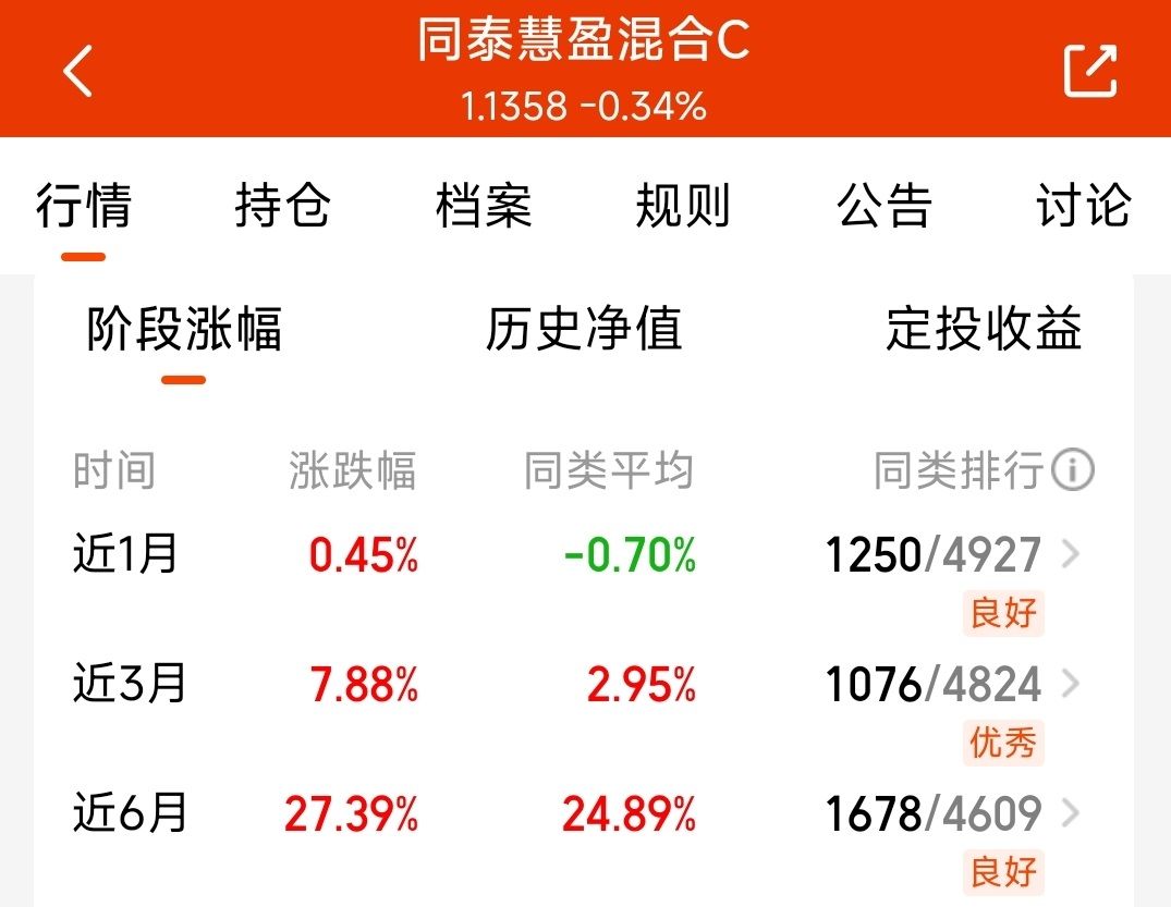 同泰慧盈混合布局稀土、贵金属、锂钴、电解铝、铜锡等全有色赛道,基金经理根据行业景气度变化动态调整持仓,近1月加仓铜锡、近3月加仓电解铝,完美跟上轮动节奏。近1月/3月/6月业绩全拿“优秀”评级,近6月涨27%跑赢93%同类,凭借全面的赛道覆盖和灵活的调仓能力,能接住每个细分板块的红利。