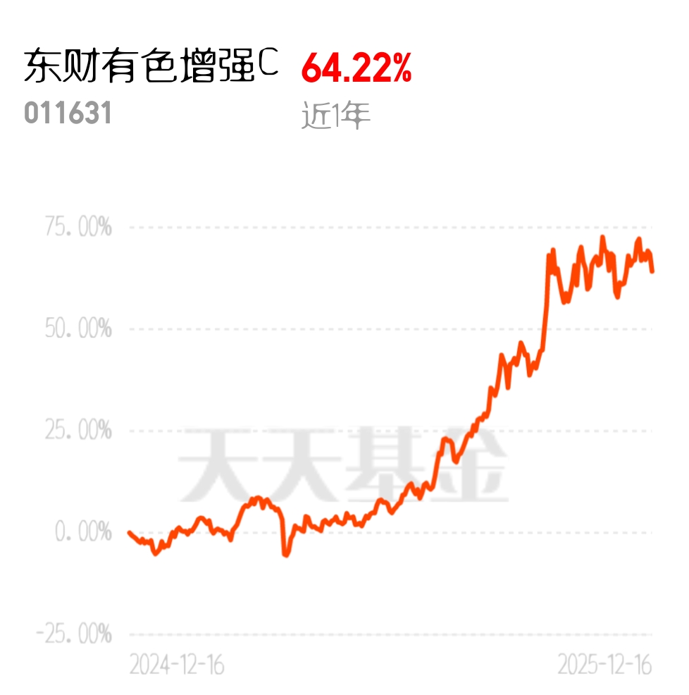美联储降息 25 个基点,美元贬值,有色集体大涨!黄金、白银、铜、锂全在涨,年内已涨 75%。$东财有色增强C$ 类 7 天免赎回费,还是市场唯一有色指增,近一年收益 64%,明年供需缺口还在,赶紧抢!