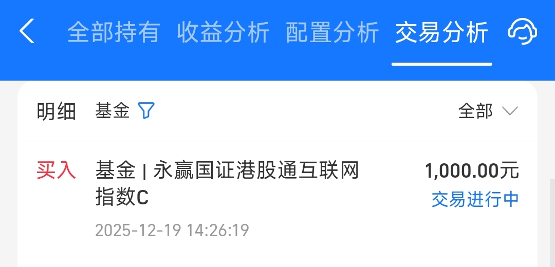 $永赢国证港股通互联网指数C(OTCFUND|025766)$加仓1000元。