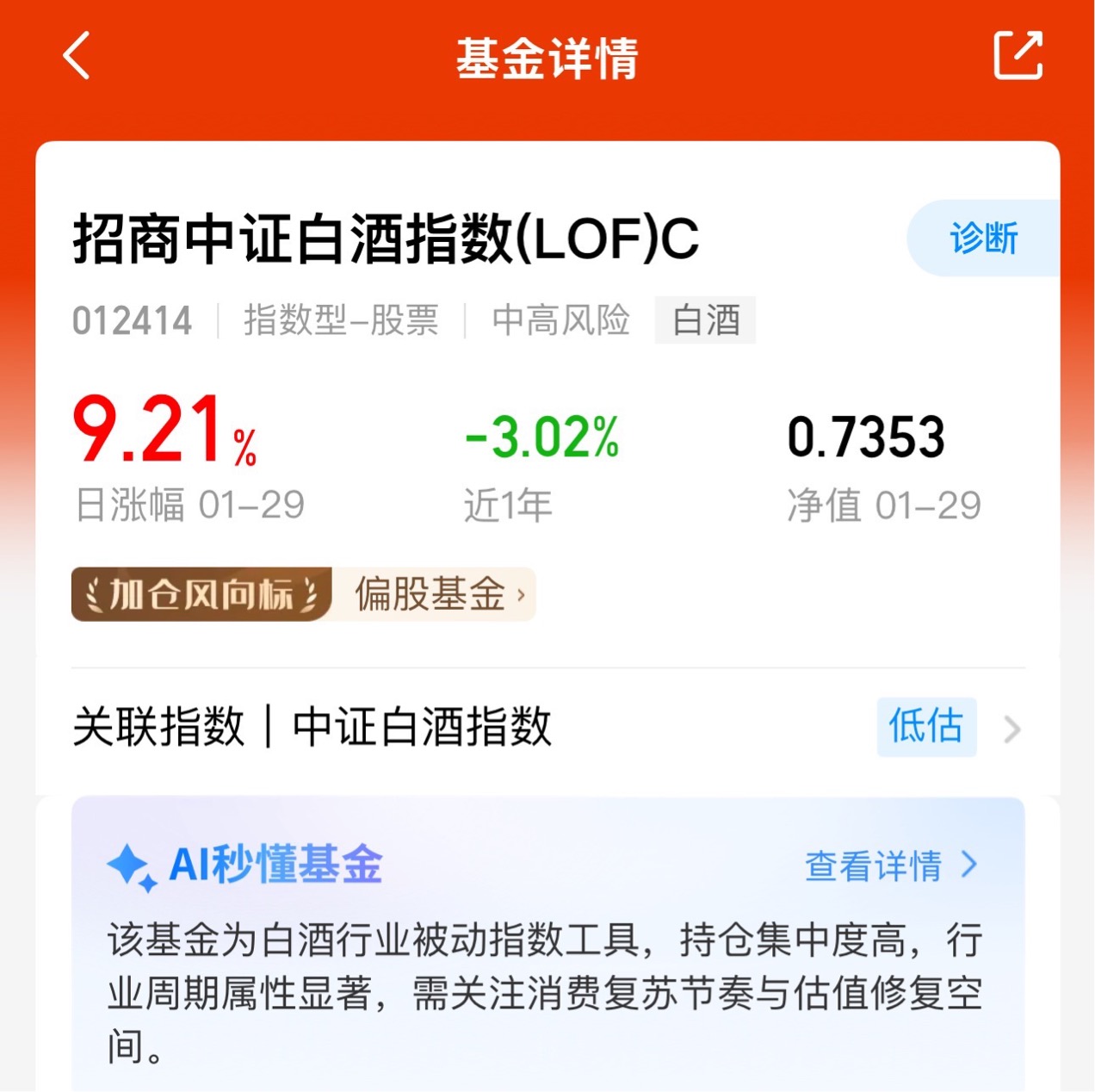 白酒板块昨天突然大爆发,直接拉出底部大阳线,属实给市场整了个大惊喜!虽说两市成交额超3万亿,但还是三千多只个股下跌,没带起普涨行情。$招商中证白酒指数(LOF)C$ 精准拿住茅台、五粮液这些头部酒企,还有分红回购和ETF资金托底,白酒已经开始修复,坐等低位继续反弹就完事了。