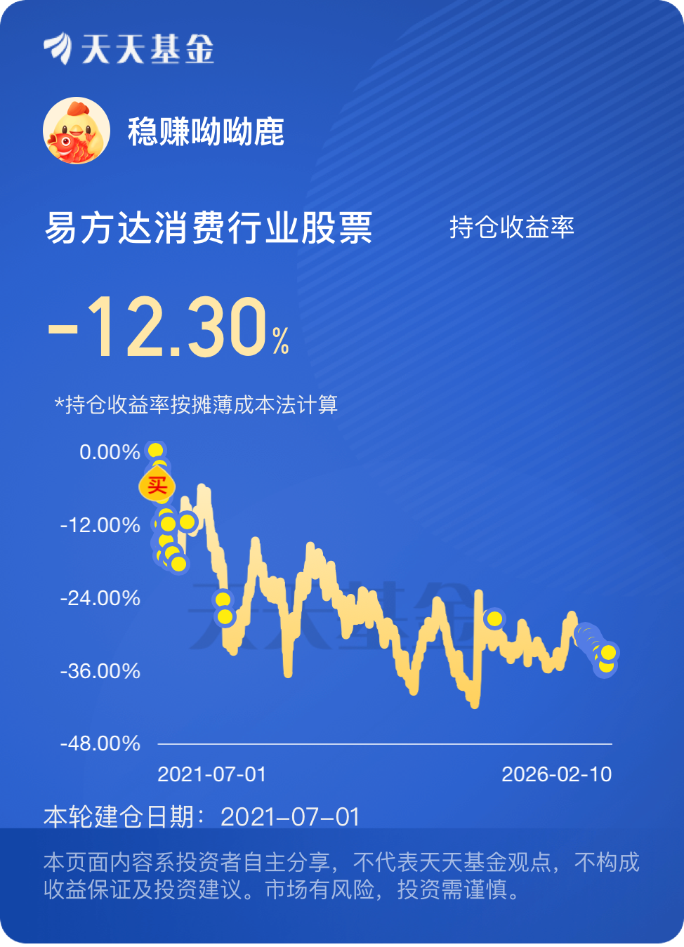 拿了你5年,一直是下坡路,补仓亏十几个点,不补得亏30%多,烂透了