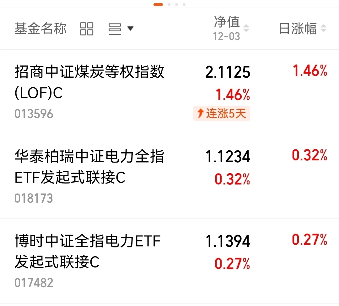 $招商中证煤炭等权指数(LOF)C$ 昨日涨幅1.46%